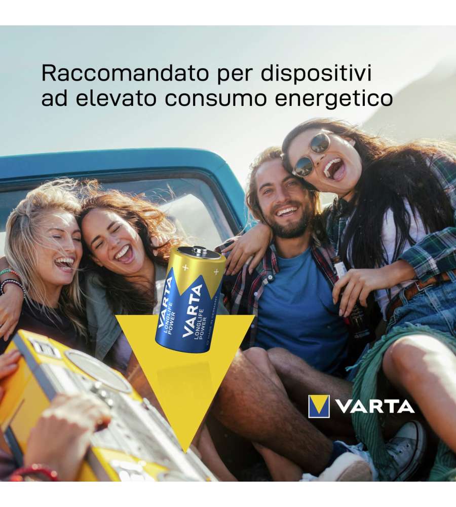 Descrizione: Batterie Varta D Longlife Power, set da 2 pezzi per dispositivi ad alto consumo energetico. Alta capacità, durata prolungata e resistenza certificata. Ideali per giochi, radio e lampade da campeggio. Affidabilità tedesca!
