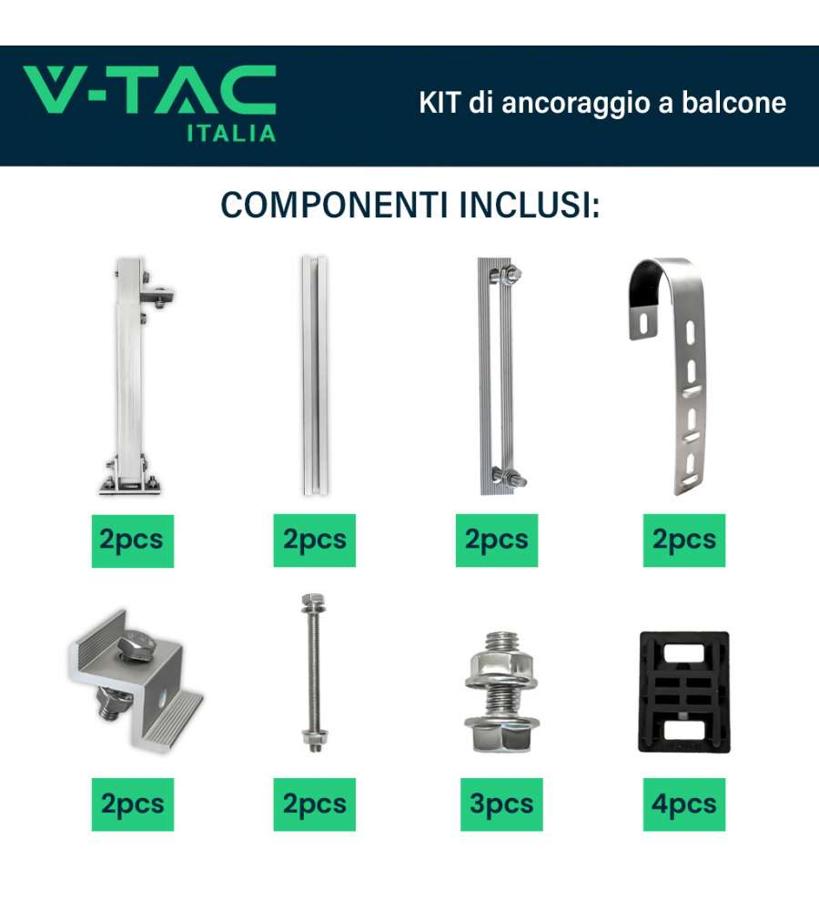 V-TAC KIT di Montaggio Pannello Fotovoltaico da Balcone