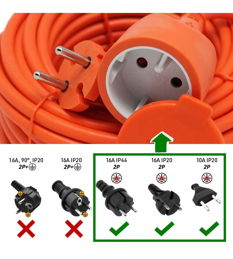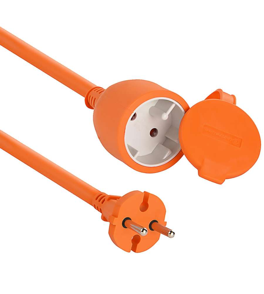 Prolunga da giardino Electraline di 20 metri con cavo H05VV-F, potenza max 3400W. Dotata di spina e presa Schuko, sicurezza per bambini. Adatta per attrezzi da giardinaggio e barbecue, colore arancione. Peso: 1.6 kg.N° poli:
