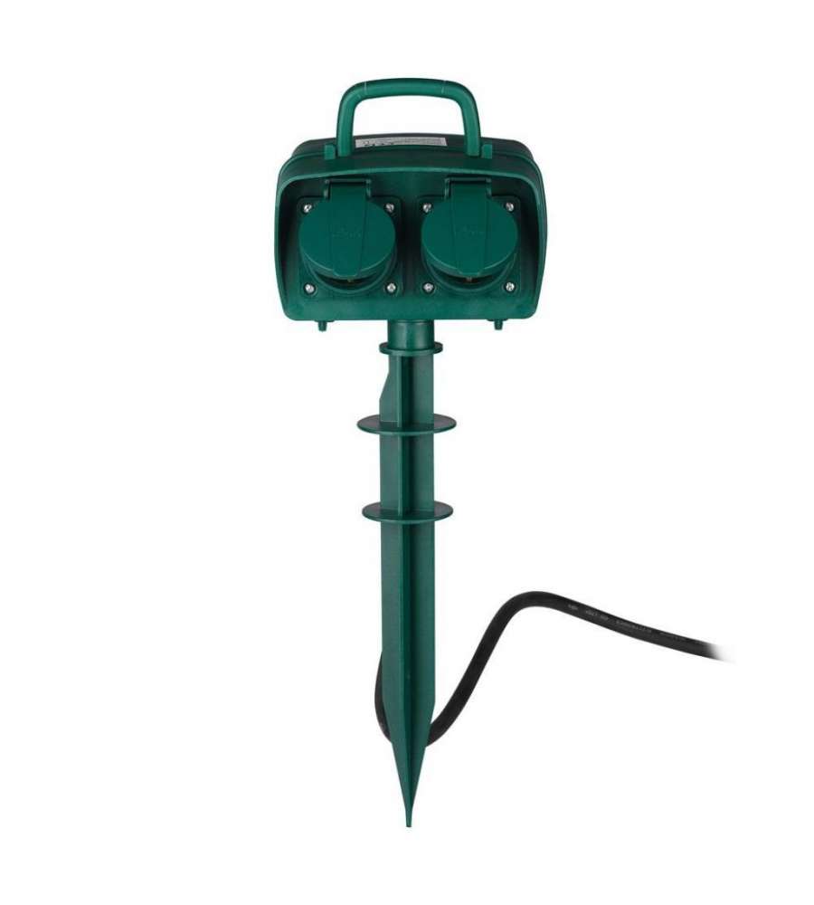 Presa da Giardino con Cavo 3mt 4 Prese 16A con Copertura Colore Verde IP44