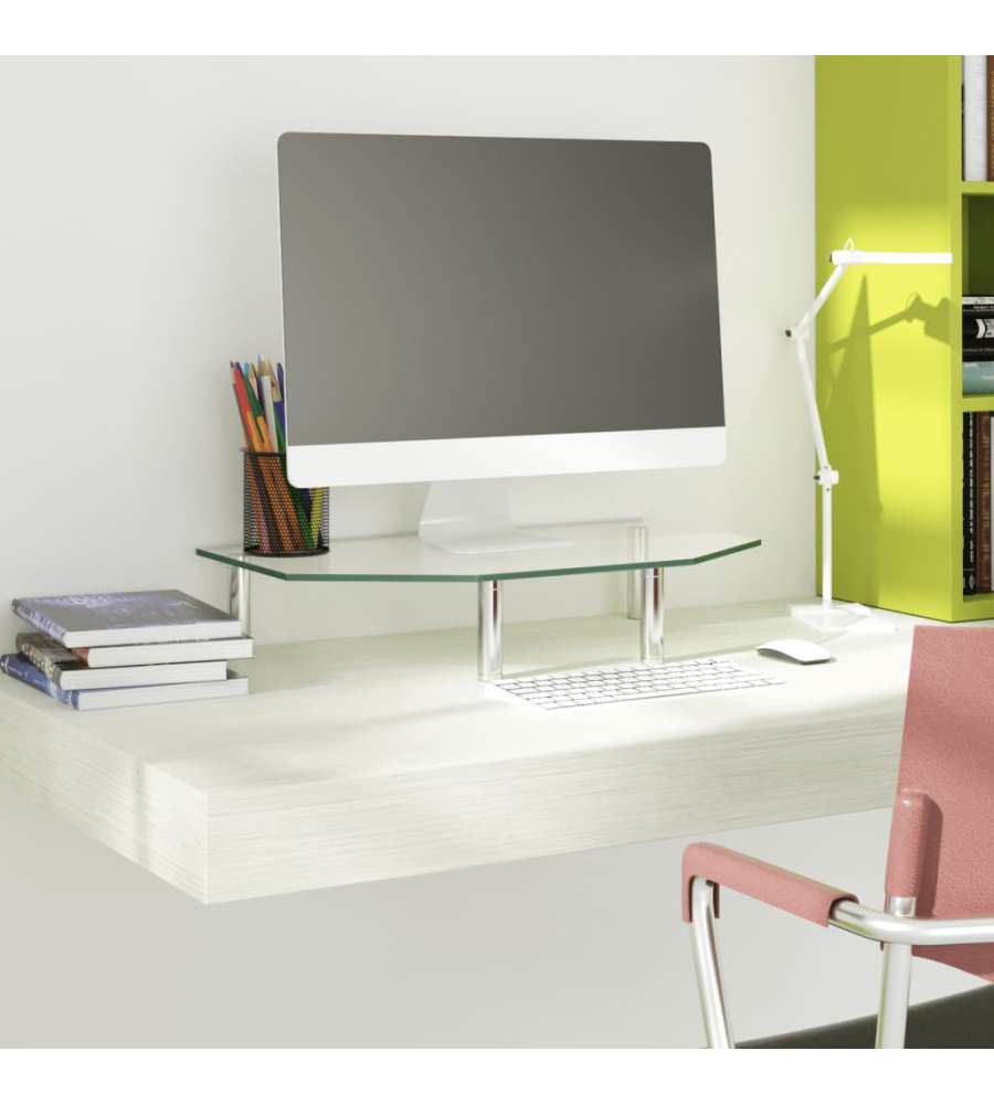 Questo supporto per desktop fa in modo che il monitor del computer sia sollevato, creando spazio aggiuntivo sotto il supporto stesso dove riporre tastiera, console di gioco, laptop e altri oggetti essenziali. Inoltre, solleva il monitor per prevenire dolori alla schiena e al collo dovuti a posture non corrette. Il piano in vetro trasparente lo rende facile da pulire e i tubi in acciaio inossidabile forniscono solidit? al prodotto.