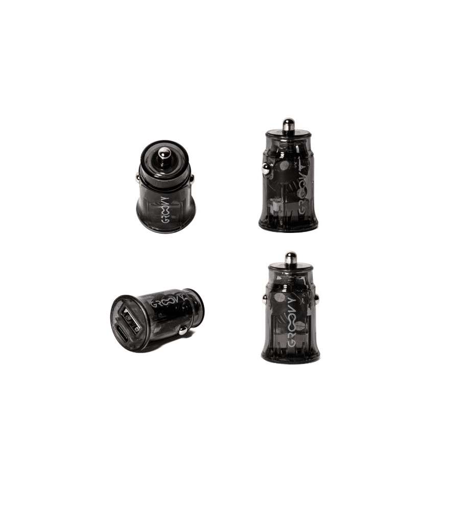 Caricatore auto Groovy con 1 porta USB e 1 USB-C, progettato per ingombro minimo. Dotato di protezioni contro sovratensione, sovracorrente e surriscaldamento. Voltaggio 5V, ampere 3,4Ah. Ricarica sicura e pratica.Destinazione d'uso: