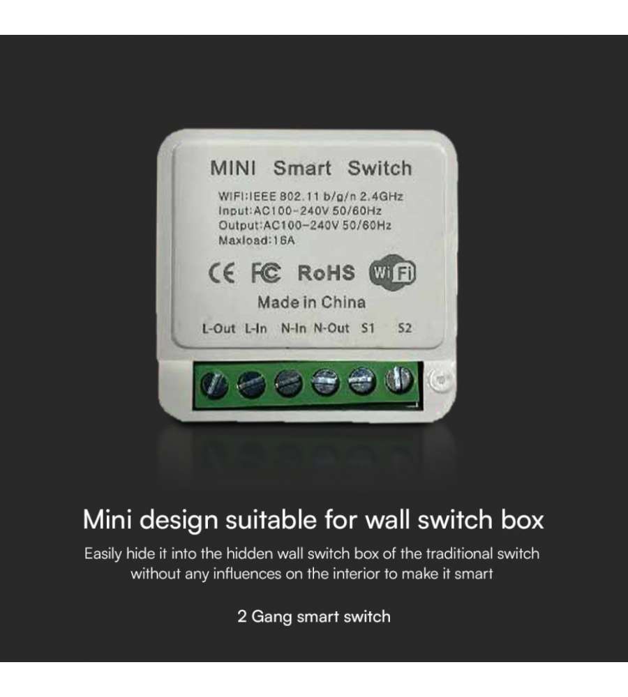 V-TAC Smart Home Interruttore Wi-Fi Mini con 2 CanaliCaratteristiche: