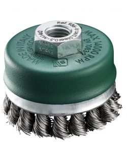 Descrizione: Spazzola a tazza inox MA14, diametro 70mm, fili ritorti 0,35mm, ideale per rimuovere ruggine, scorie e vernici. Efficienza e durata garantite.