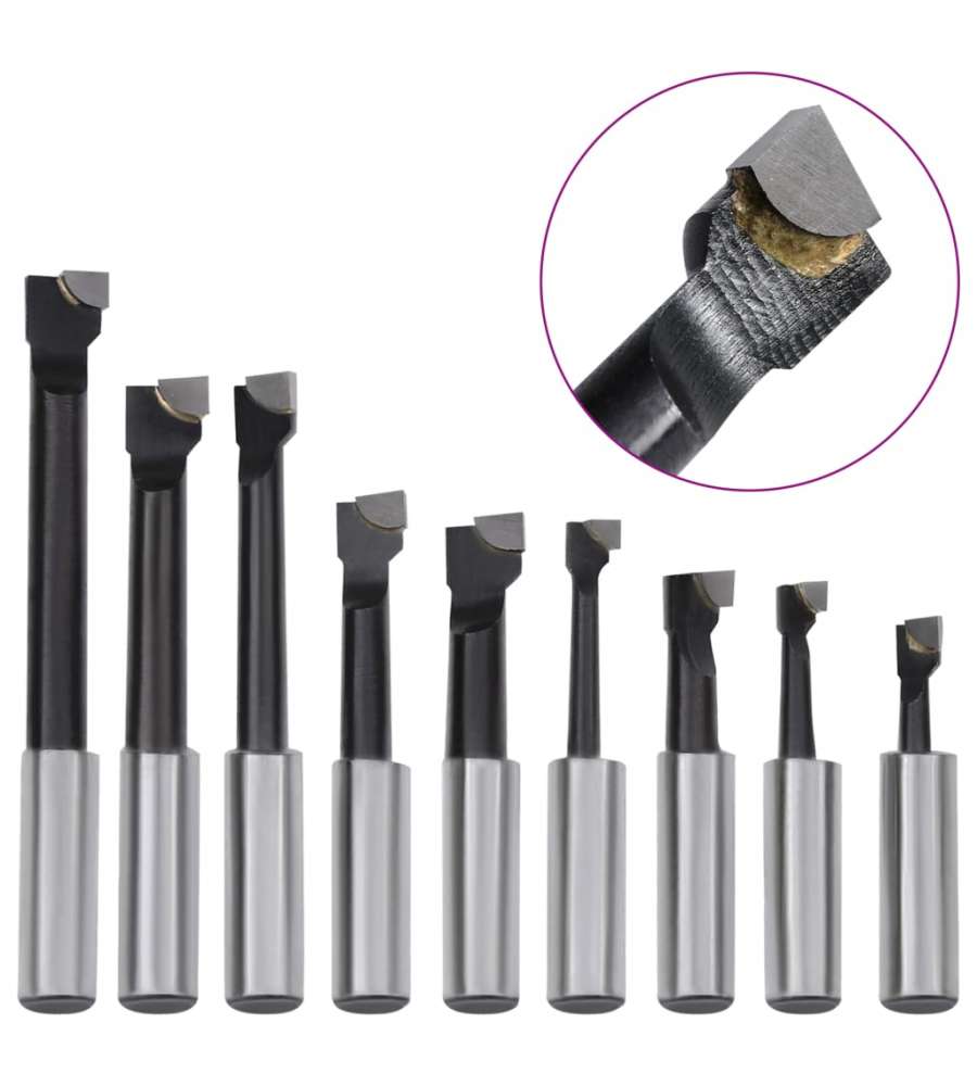Questo set di utensili di alesatura ? realizzato in acciaio di qualit? con eccellente durezza e tenacit? per fornire prestazioni stabili. Comprende frese a forare da 9 pz 12 mm di diverse dimensioni, di facile utilizzo e sostituzione. Questo kit di utensili per alesare include testa, codolo, frese e chiavi per soddisfare le diverse esigenze. Nella consegna ? inclusa una scatola per riporre facilmente il set e per un trasporto comodo.