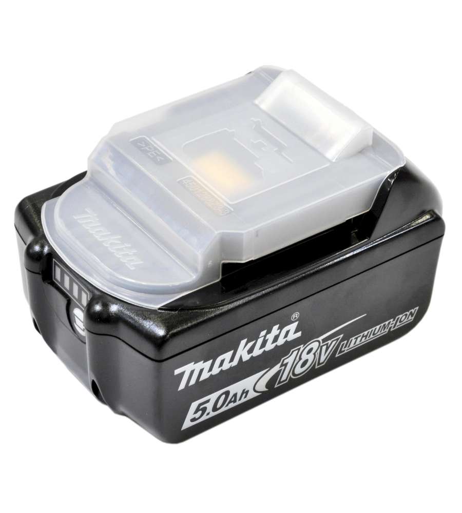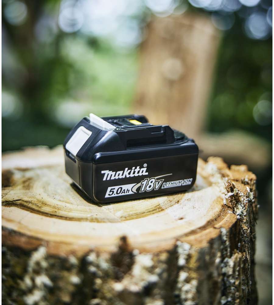 Batteria agli ioni di litio da 18V e 5,0 Ah, compatibile con utensili Makita LXT® per uso intensivo. Tempo di ricarica rapido di 45 minuti, peso leggero di 0,63 kg e dimensioni compatte per facilità d'uso.Altro 1: