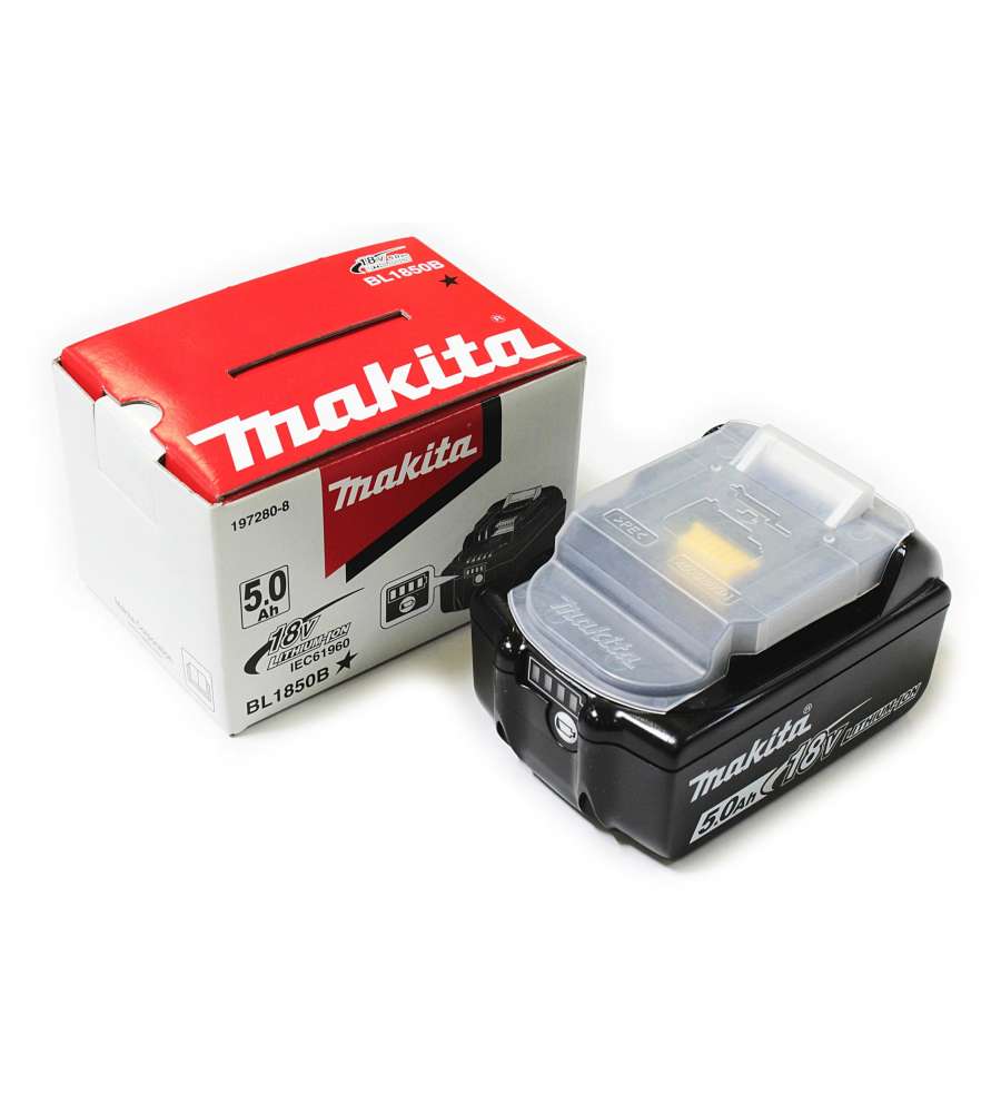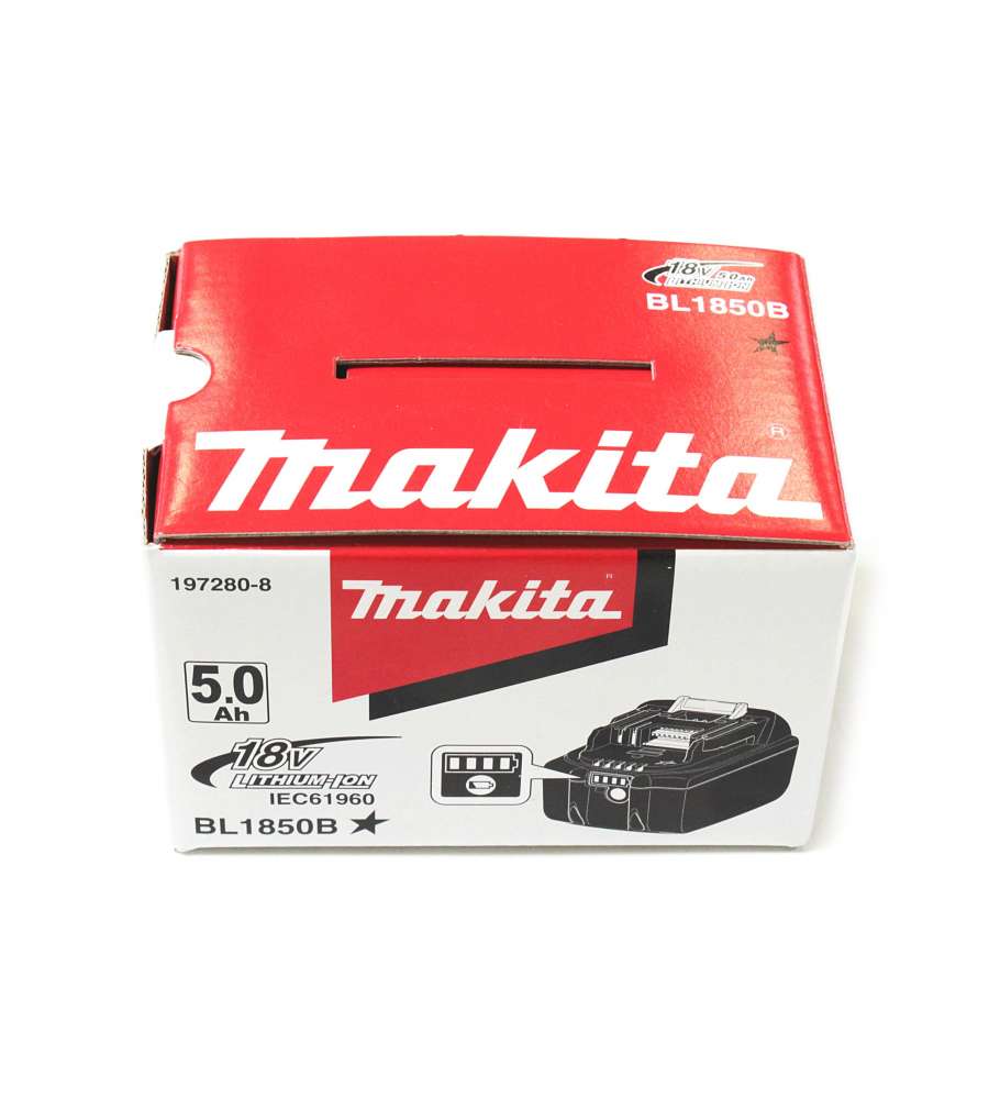 Descrizione: Batteria 18V 5 Ah al Litio Makita BL1850B, ideale per utensili LXT. Potente, con indicatore di carica e ricarica rapida in 45 min. Leggera e compatta, perfetta per lavori intensivi.