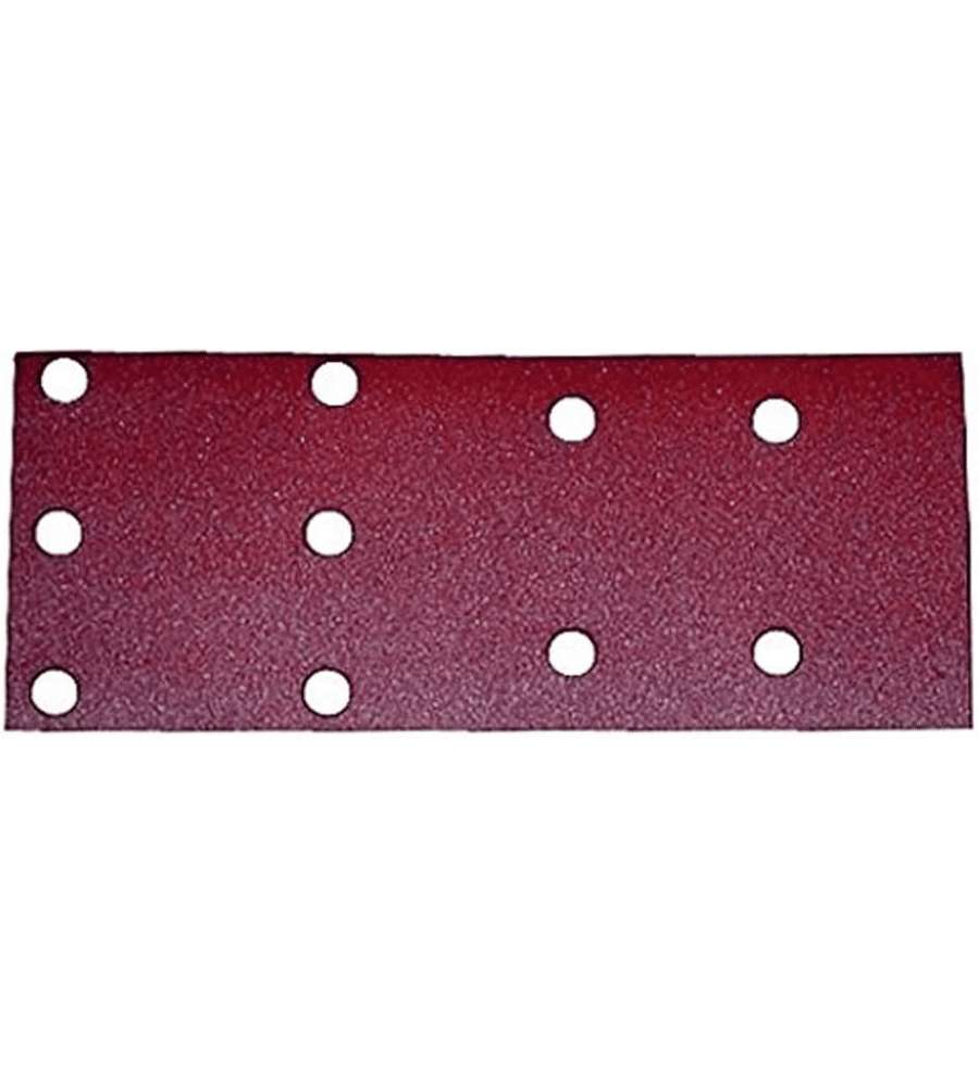 Pack da 10 carte abrasive con velcro, dimensioni 100x240 mm, grana 120, adatte per dispositivi Makita BO4566-BO4563 e compatibili con altri marchi. Fissaggio pratico e materiale in ossido di alluminio per una lavorazione efficace.Altro 1: