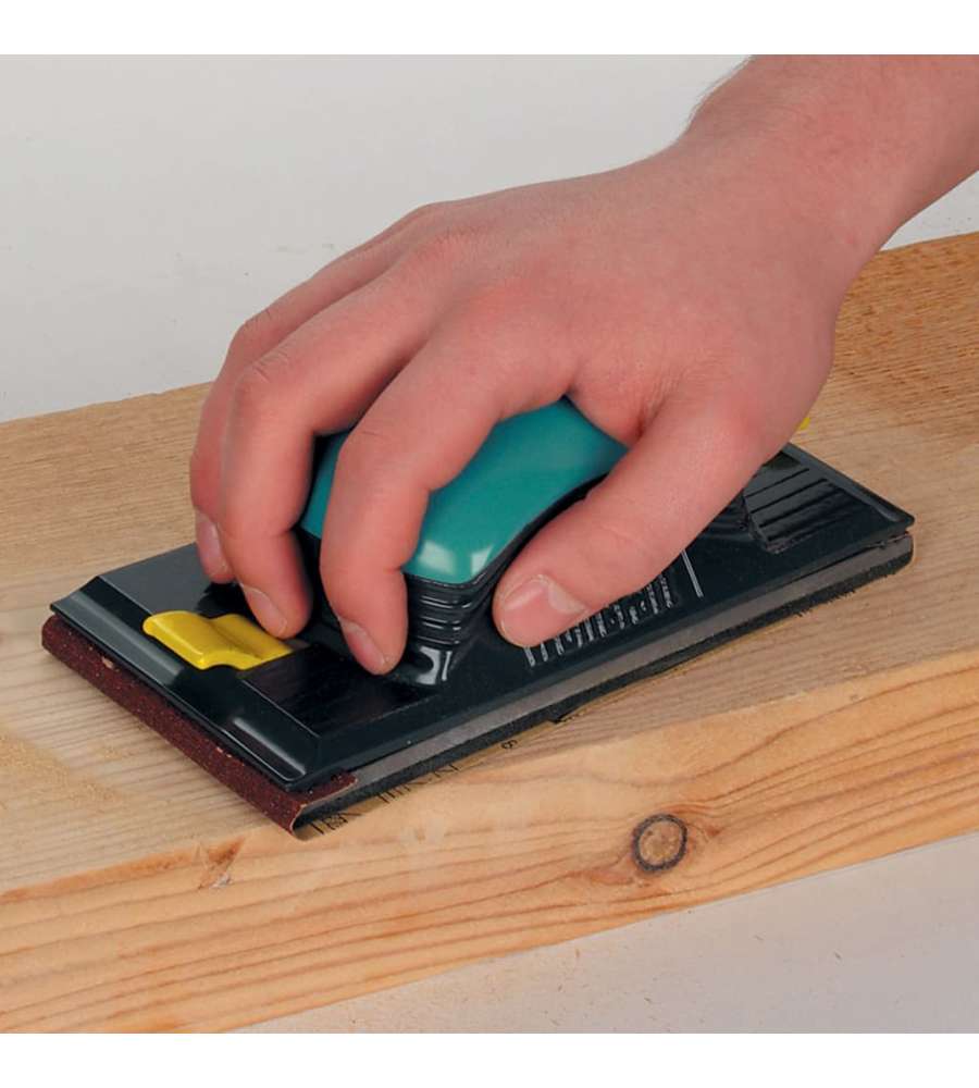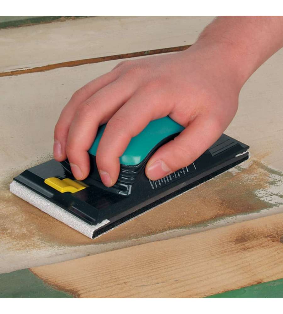 Ha un manico in composito con design ergonomico, quindi puoi lavorare vigorosamente e senza fatica. Per fogli abrasivi 93 x 230 mm Impiego universale Per superfici e angoli Impugnatura ergonomica per lavorare composito senza fatica