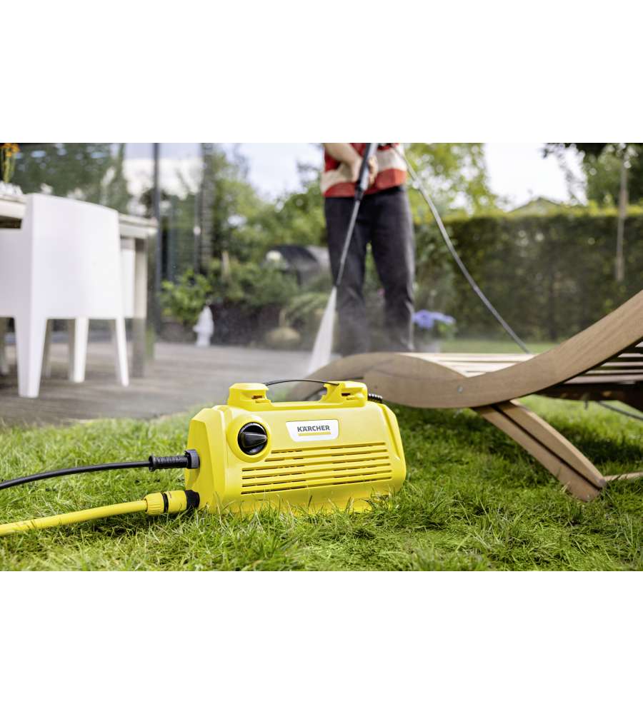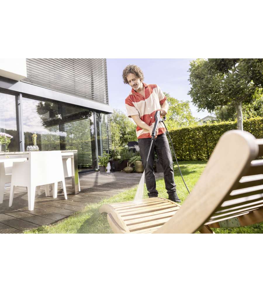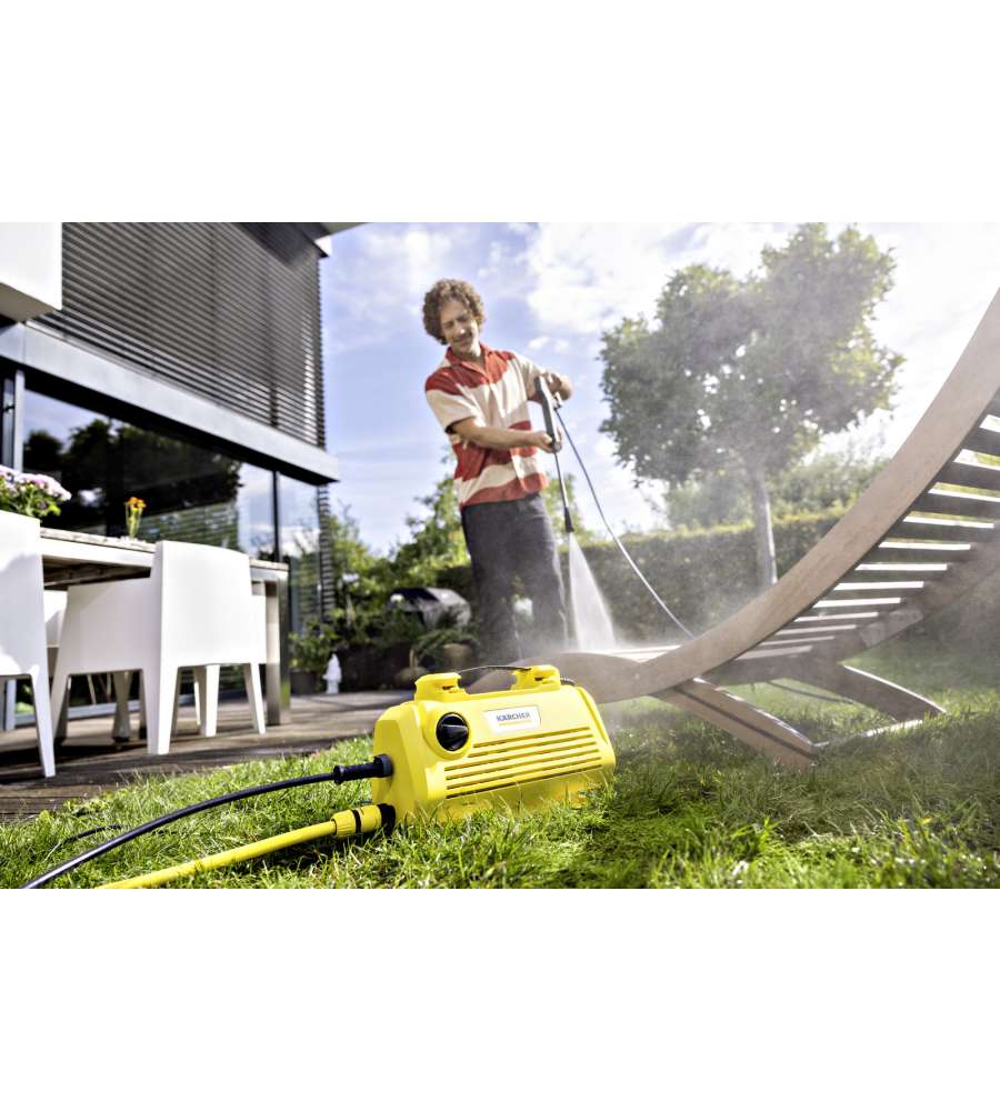 Piccola e salva spazio, l'idropulitrice K 2 Horizontal è dotata di una lancia a ventaglio per eliminare lo sporco da tutte le superfici esterne come veicoli, mobili e giochi da giardino, staccionate o sentieri. Grazie al peso ridotto e alla pratica maniglia integrata, l'idropulitrice può essere trasportata con semplicità. Il pratico sistema Quick Connect permette di connettere tutti gli accessori velocemente. Tutti gli accessori contenuti nella dotazione, fra cui il tubo ad alta pressione da 3 metri, possono essere facilmente riposti in modo compatto sulla macchina. I detergenti Kärcher (disponibili come opzione) non solo proteggono e curano la superficie da pulire, ma producono risultati più efficienti e duraturi.