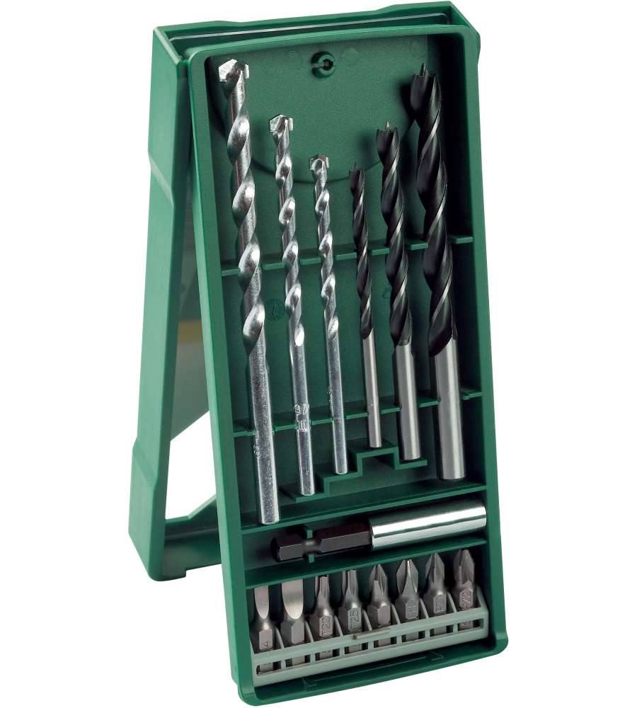 Descrizione: Set di punte e bit avvitamento Mini-X-Line Bosch, 15 pz. Include 3 punte resistenti per legno e 3 per muratura, 8 bit per viti e un portabit magnetico per cambi rapidi. Custodia pratica per un'organizzazione ottimale.