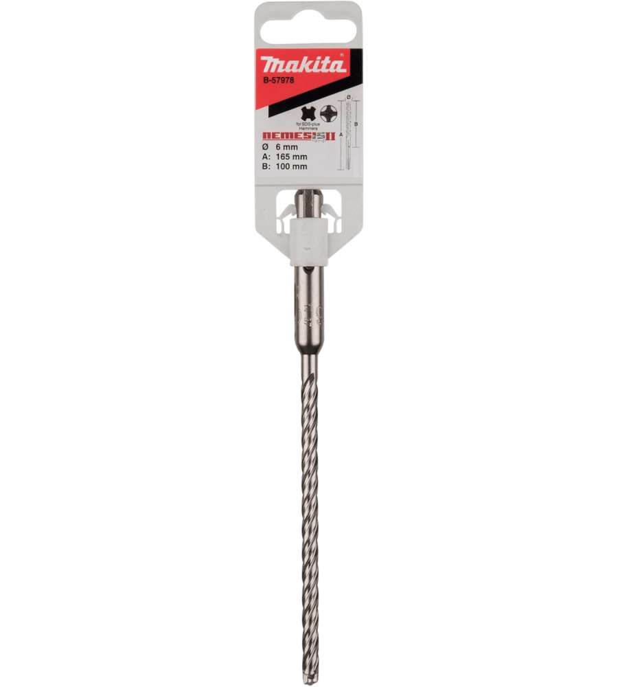Descrizione: Punta SDS-PLUS Nemesis II Makita, 6x165mm, ideale per foratura calcestruzzo. Taglienti autocentranti in carburo, estrazione polvere efficiente, resistenza e durata eccezionali. Perfetta per tassellatori!