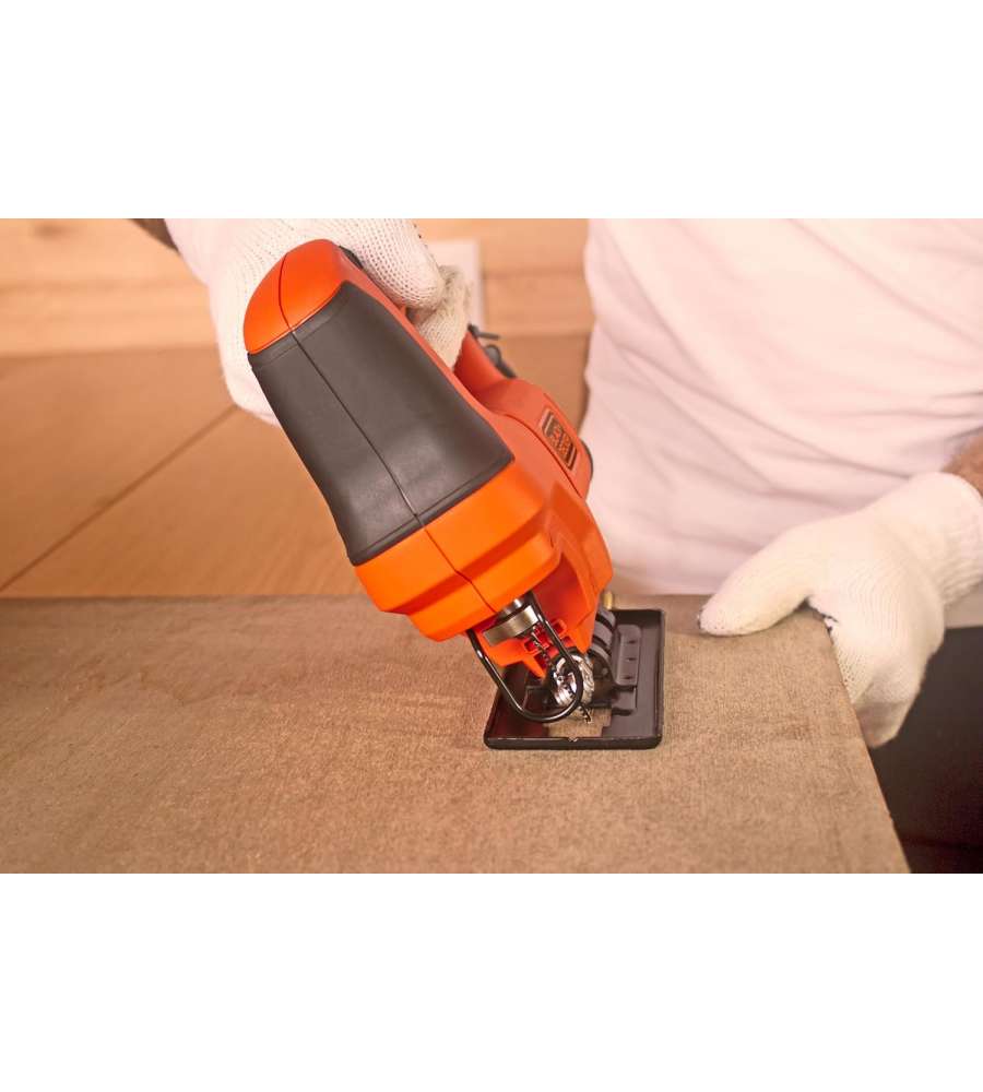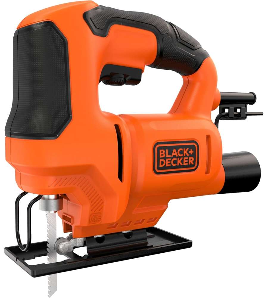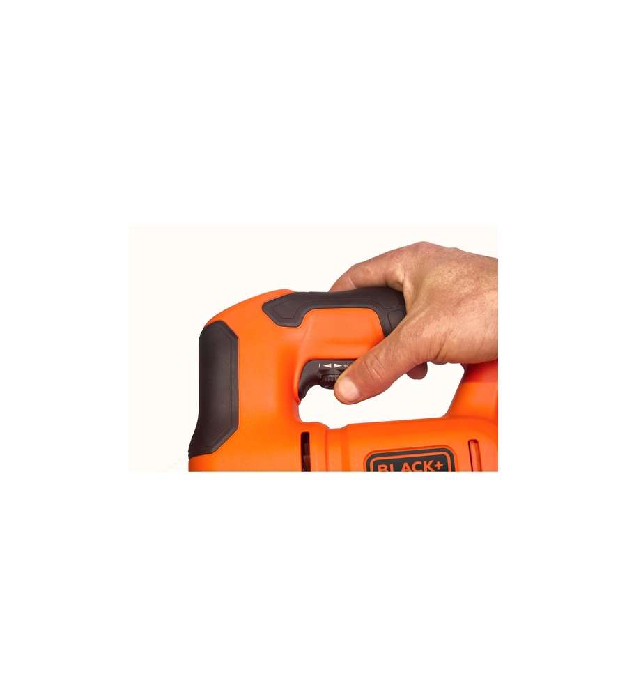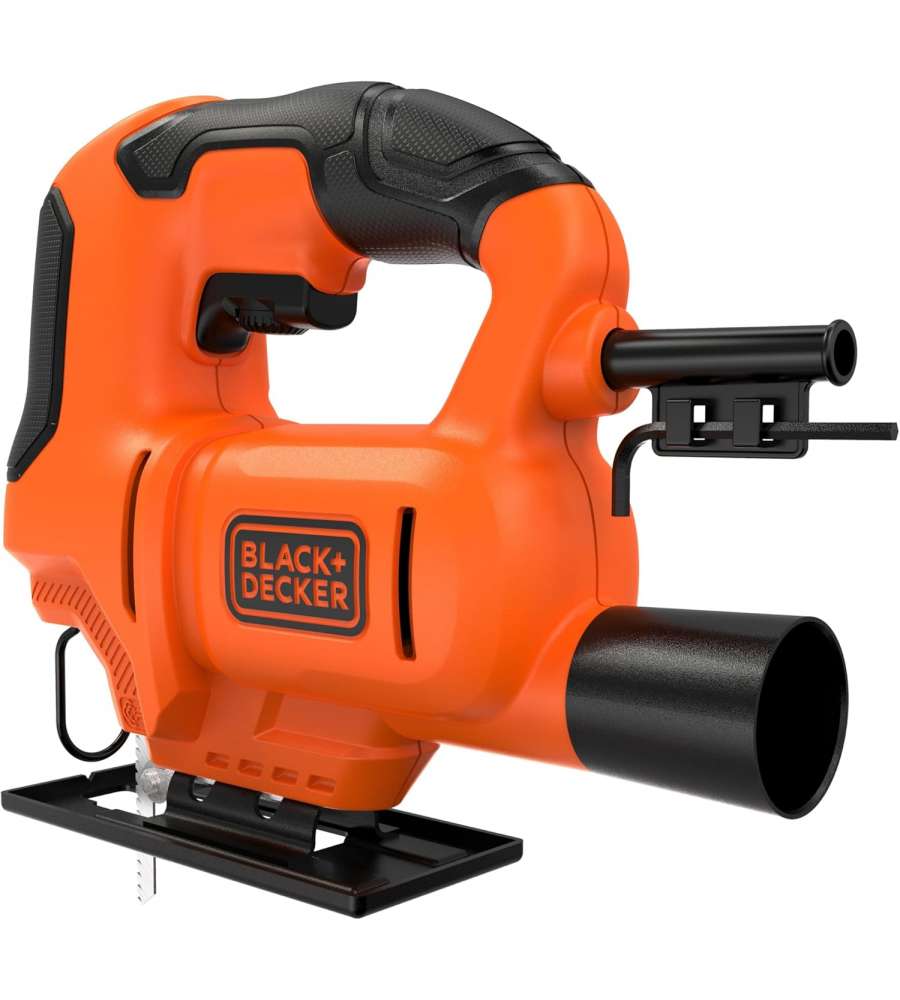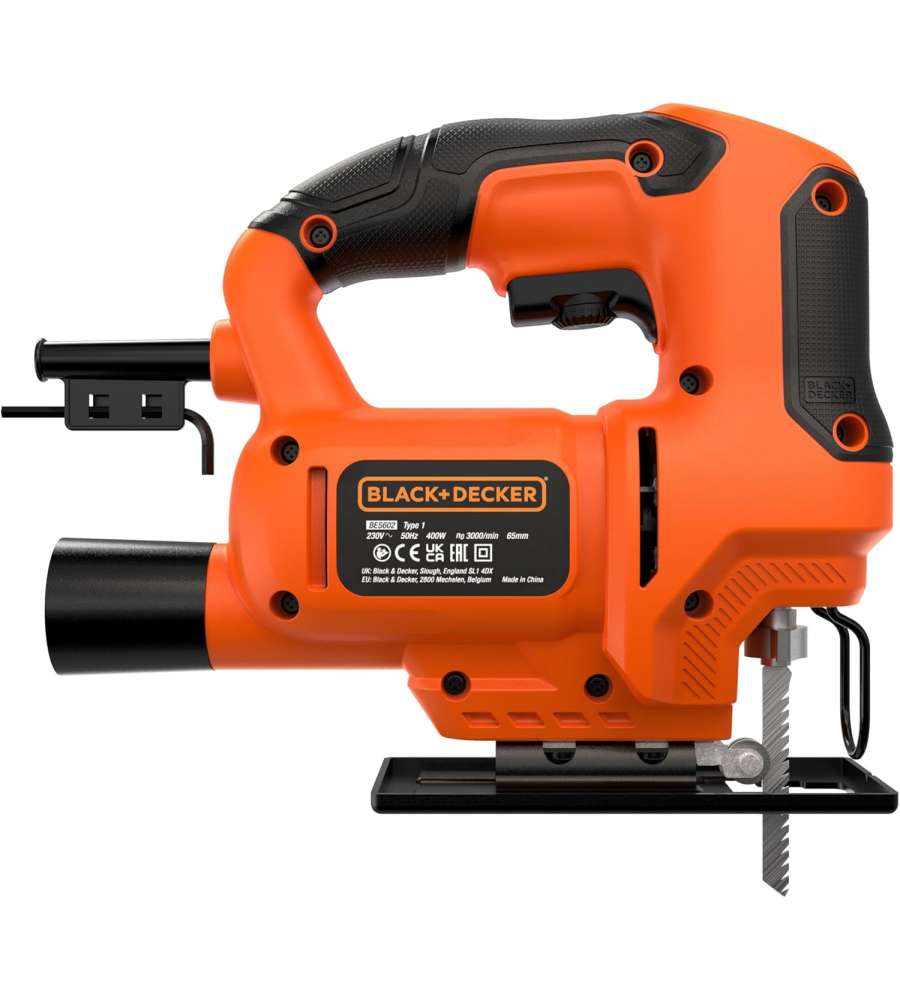 Seghetto alternativo Black+Decker 400W con 6 lame incluse. Tagli fino a 65mm nel legno, 6mm nel metallo. Cambio lama rapido, impugnatura ergonomica e funzione di soffiaggio polvere per visibilità. Fino a 3000 cpm.Altro 1: