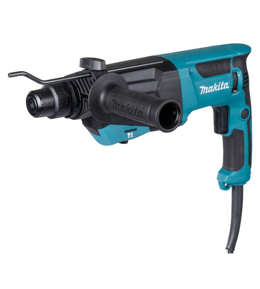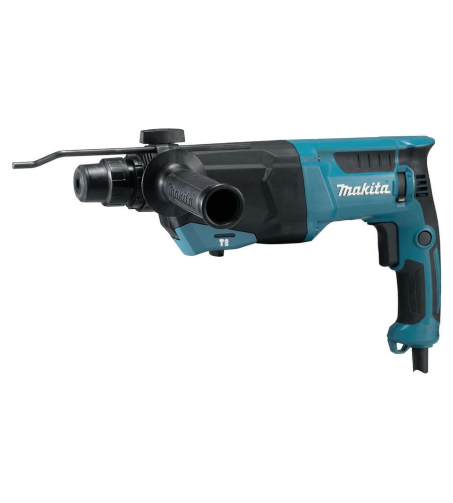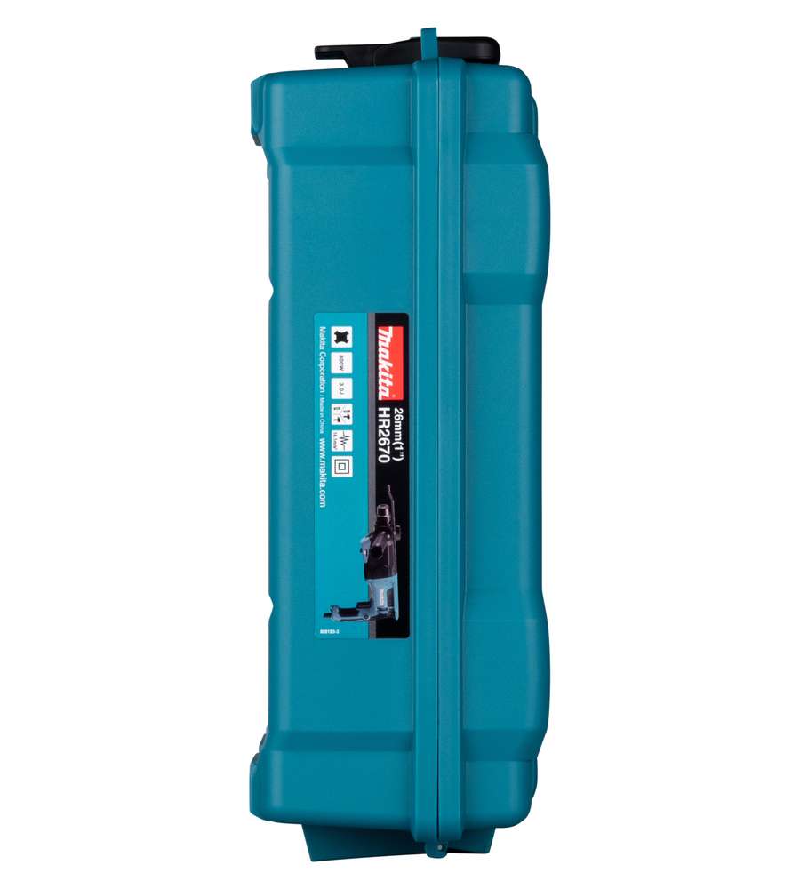 Tassellatore Makita HR2670 da 800W, compatibile SDS-Plus. Tre modalità: foratura, percussione e scalpellatura. Peso 3,4 kg, colpo 3,0 J, velocità max 1500 giri/min. Design ergonomico e pulsante di blocco per uso continuativo.Altro 1: