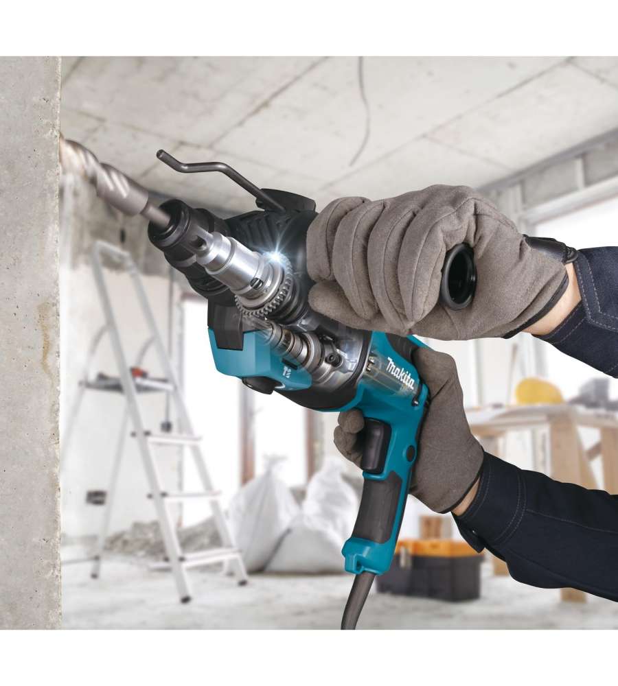 Il Makita HR2670 è un martello combinato progettato per offrire potenza e versatilità ai professionisti più esigenti. Grazie al suo motore da 800W, è in grado di erogare un'energia d'impatto di 3,0 Joule, permettendo forature fino a 26 mm nel calcestruzzo. Questo strumento si adatta facilmente a diverse applicazioni, dalla foratura alla scalpellatura, grazie alle sue tre modalità operative: solo rotazione, solo percussione e rotazione con percussione. Il design ergonomico e il peso contenuto assicurano un utilizzo confortevole anche durante sessioni prolungate, mentre il pulsante di blocco integrato consente un funzionamento continuo senza affaticamento.