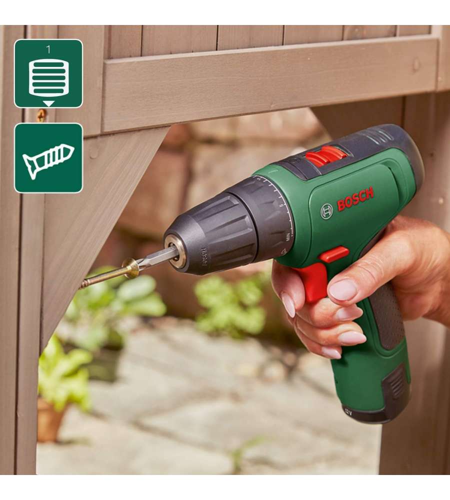 Descrizione: Scopri il trapano-avvitatore EasyDrill 1200 Bosch: compatto e leggero, ideale per forature nel legno e metallo. Illuminazione LED integrata e mandrino autoserrante per un utilizzo semplice e veloce.