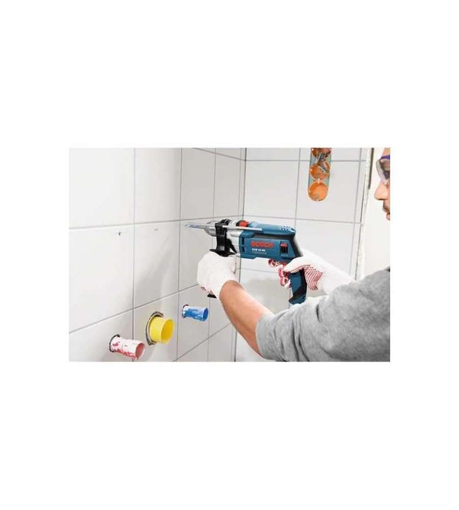 Trapano a percussione Bosch GSB16RE da 750 W per un rapido avanzamento del lavoro. Carcassa ingranaggi in metallo per massima durata. Mandrino autoserrante con Auto-Lock per cambio utensile veloce e semplice. Peso 4.2 kg.