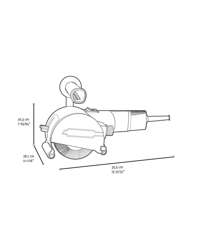 Sistema di stabilizzazione della velocità di rotazione, partenza graduale, blocco dell'albero, interruttore a due posizioni ON/OFF con blocco, sistema di regolazione della profondità della spazzola con cuffia