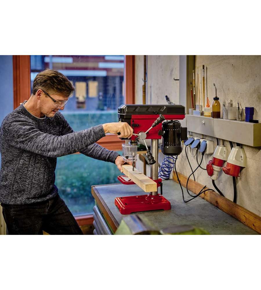 Variabile grazie alla regolazione continua dell'altezza del piano a forare. Piano a forare girevole e inclinabile. Leveraggio a croce gommato a tre bracci per una pressione di contatto precisa.Altro 1: