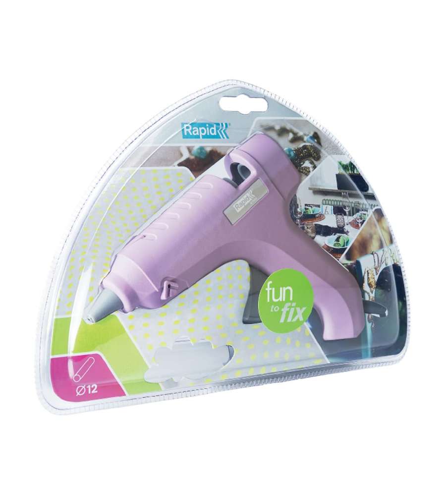 Descrizione: Pistola termoincollante Rapid G1000, potente e versatile con 15/60 W. Avanzamento automatico della colla Ø12 mm. Ideale per hobbisti. Design ergonomico e colore rosa per un tocco di stile!
