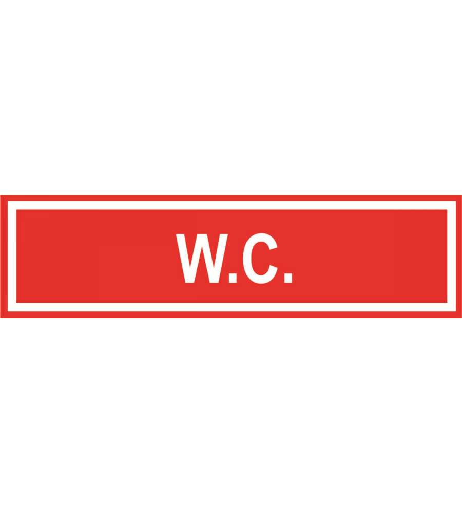 Targhetta adesiva segnaletica "WC" in vinile satinato, formato rettangolare 4x15 cm, spessore 0,4 mm. Scritta bianca su sfondo rosso, ideale per uffici, negozi, scuole e case. Applicazione facile e immediata.Altro 1: