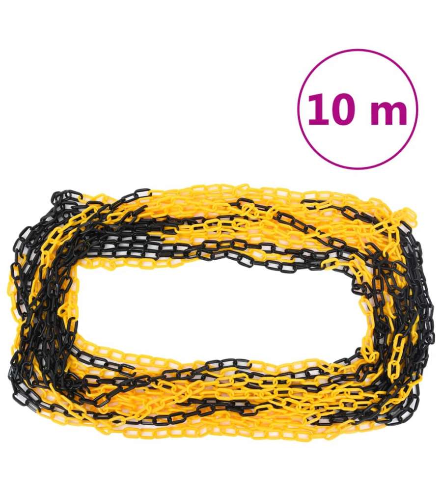 Colore: Giallo e nero Materiale del palo: PE Materiale catena: Plastica Altezza: 90 cm Dimensioni della base: 28 x 28 cm (L x P) Lunghezza della catena: 10 mAltro 1: