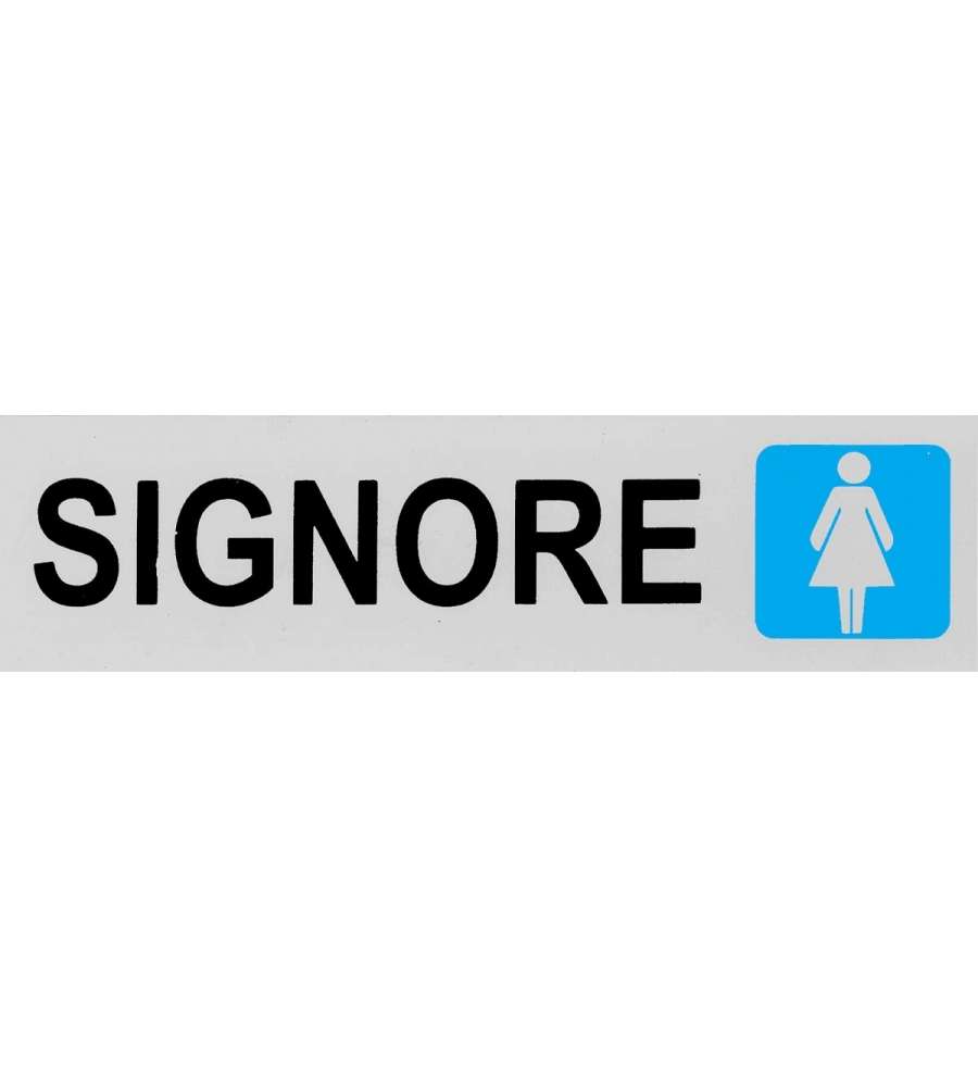 Descrizione: Targa adesiva "Signore" in vinile rigido 4x15 cm, colore grigio. Ideale per indicare il bagno femminile in spazi pubblici e privati. Facile applicazione su superfici piane, visibilità garantita.