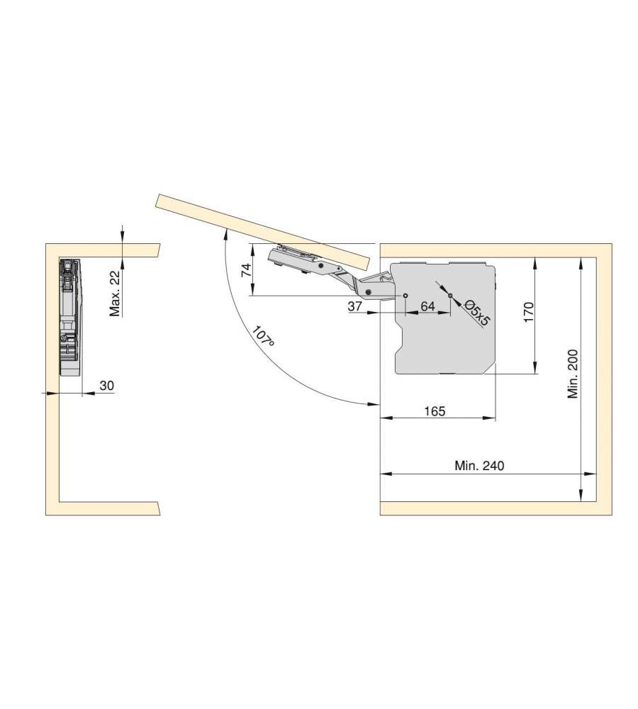 Sistema a compasso per sollevare ante in cucine e mobili per la casa.Formato: