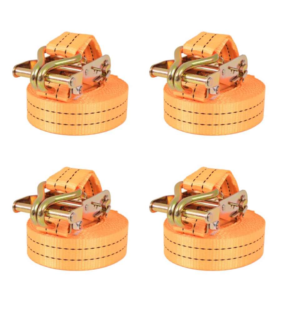 Queste robuste cinghie di ancoraggio a cricchetto possono essere usate per fissare o assicurare il carico per il trasporto o lo stoccaggio.