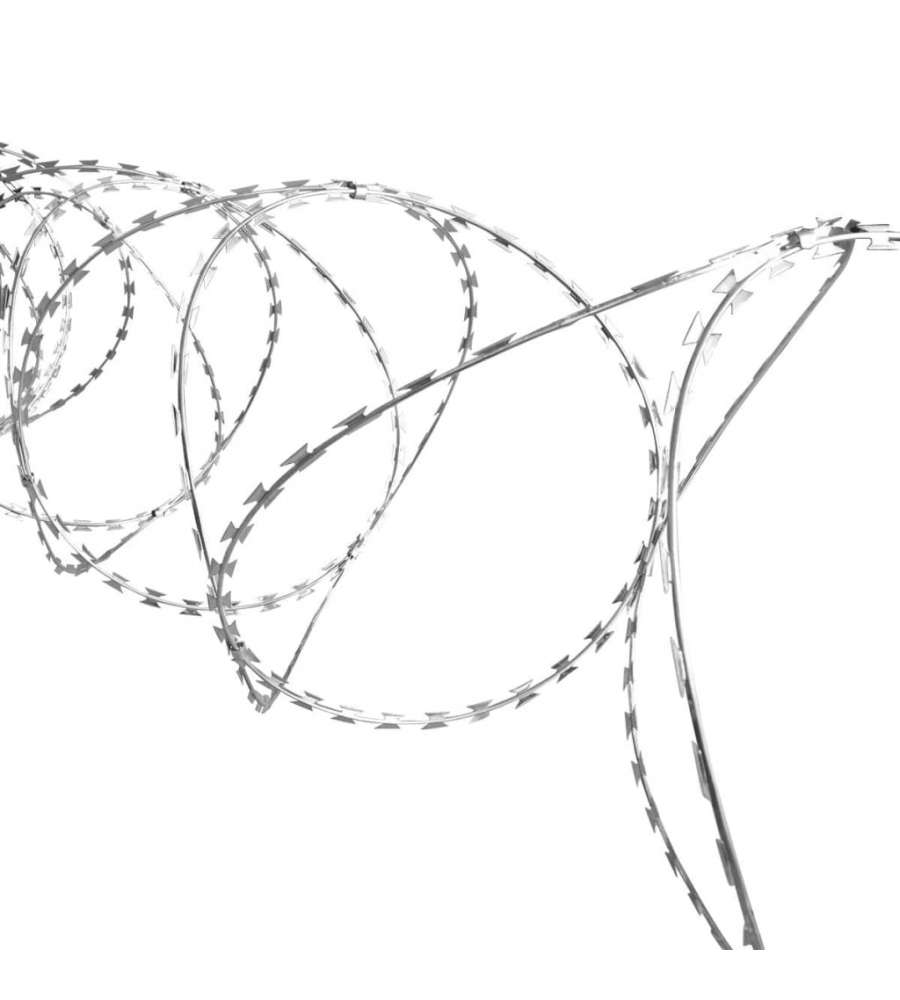 Il robusto filo spinato è già arrotolato ed è dotato di 3 clip su ciascun anello, in tal modo assume una forma tubolare, con spazi troppo piccoli perché una persona possa attraversarloAltro 4: