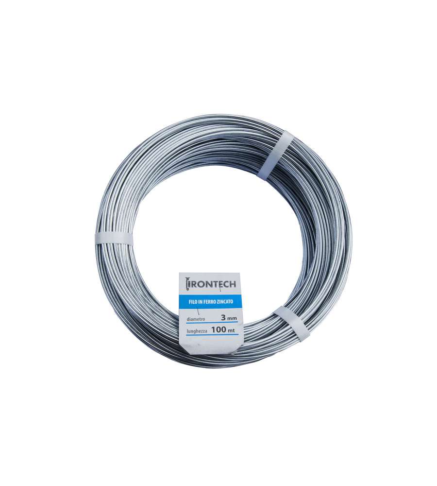 Filo di ferro zincato, diametro 3,0 mm, lunghezza 100 mt. Resistente alla corrosione, ideale per usi multiuso. Confezione sfusa, appendibile.