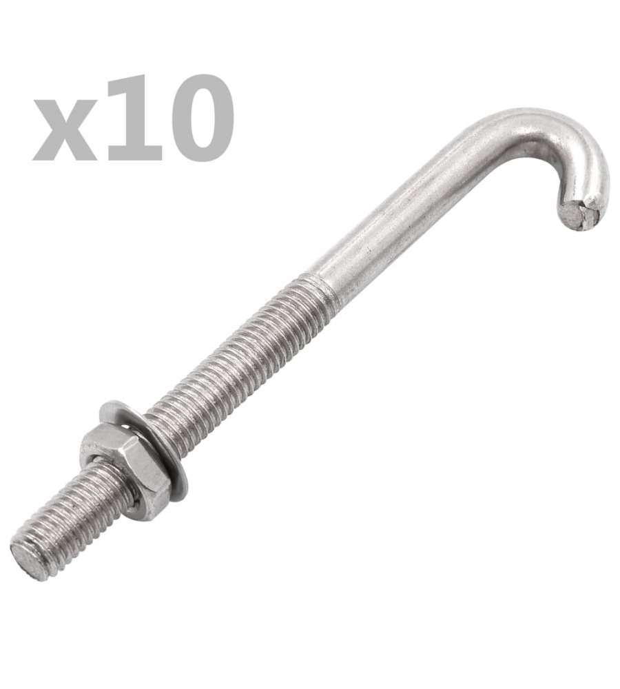 Realizzato in acciaio inossidabile, ? resistente alla ruggine, garantendo un uso a lungo termine. La consegna include 25 set in una scatola. Ogni set include bullone a J, dado esagonale e rondella.