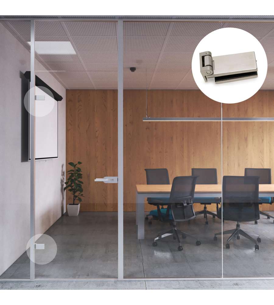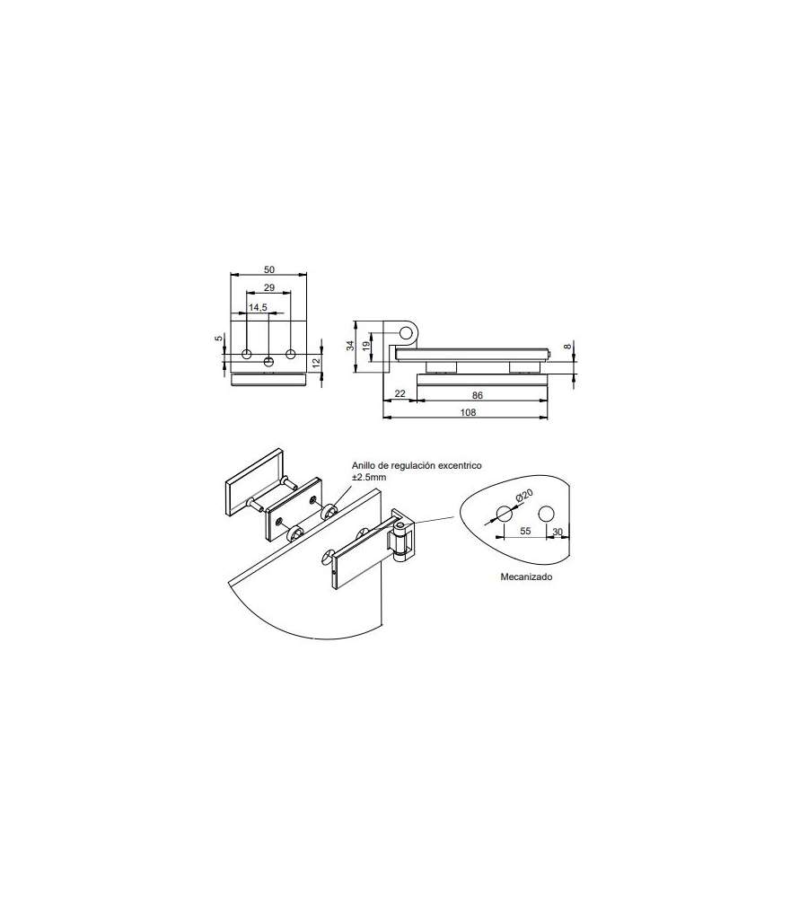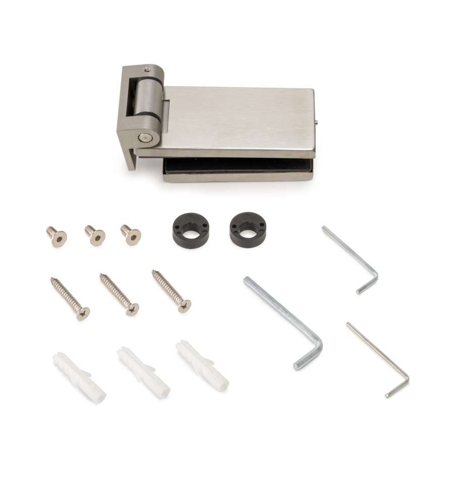 Emuca Cerniera per anta in vetro con finiture in acciaio inox, cerniera orizzontale con forcella da 34 mm, per anta da 8-12 mm, acciaio inox 1 UN