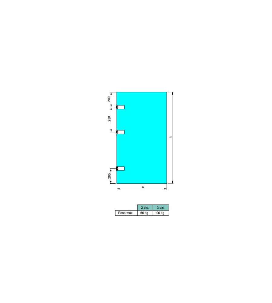 È dotata di anelli eccentrici che consentono una regolazione di ±2,5 mm. Due cerniere supportano 60 kg e 3 cerniere 90 kg.Altro 1: