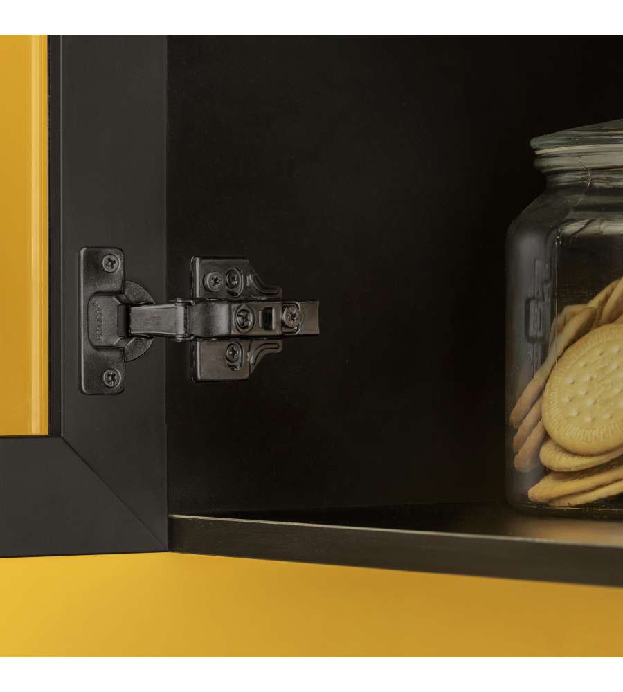 Cerniere per ante progettate per l'utilizzo nei mobili della casa e dell'ufficio con alta qualità e al miglior prezzo. Con pistone ammortizzatore che regola la chiusura soft dell'anta.