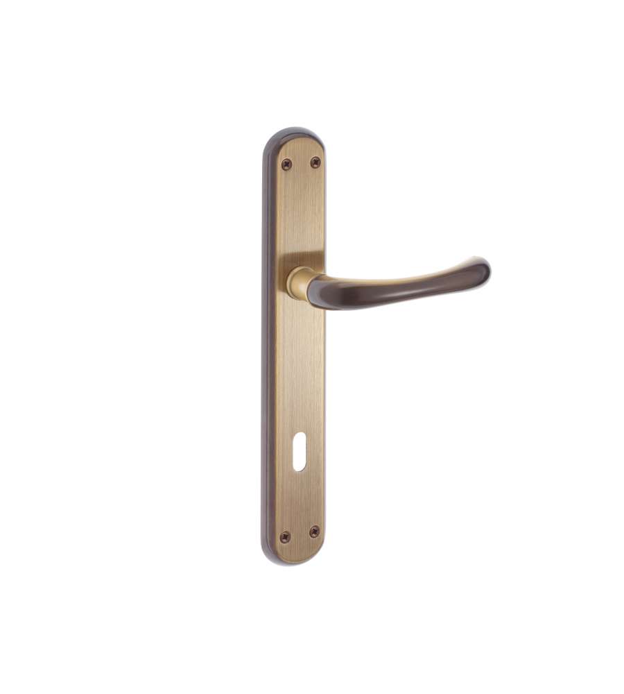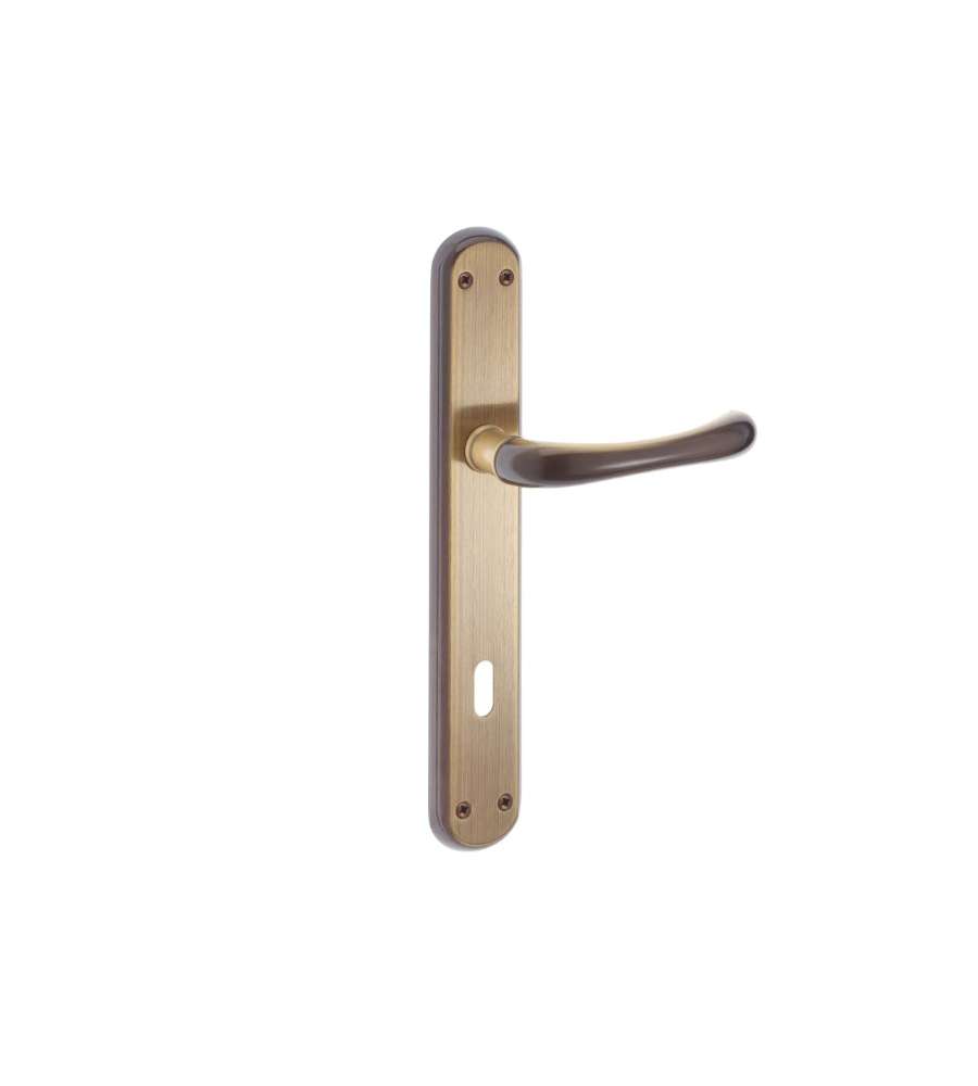 Maniglia in ottone con placca foro patent, impugnatura tonda e bombata. quadro interscambiabile. misura placca mm.255×42, altezza placca mm.10. sistema con molla di ritorno.I dati sottostanti riguardano la sede legale e le Informazioni correlate del produttore del prodotto.
