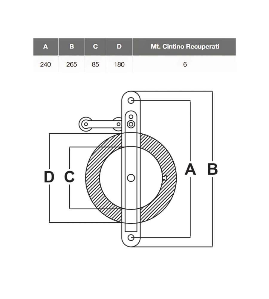 Descrizione: Avvolgitore esterno Vulcania in acciaio nichelato, ideale per cintino di 6 metri. Interasse 245 mm, resistente e facile da installare. Perfetto per tapparelle e accessori avvolgibili.