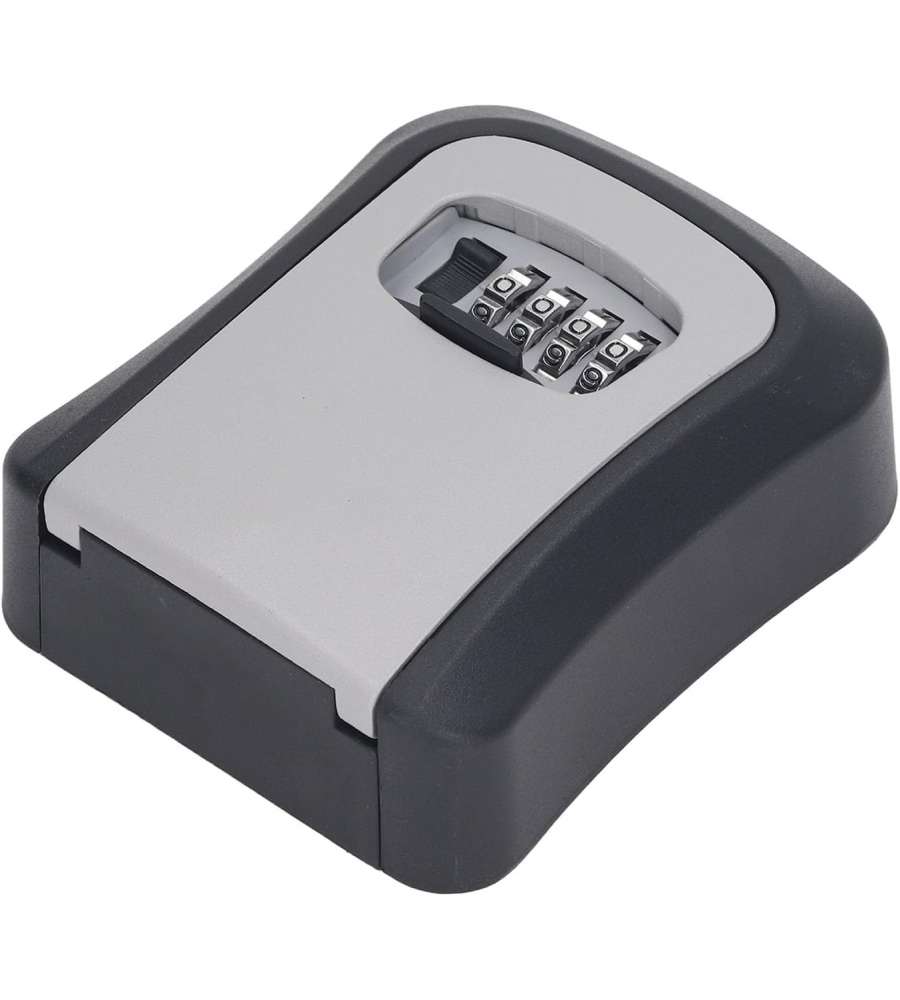 Cassetta di sicurezza a muro per chiavi, dimensioni 13,5x10,5x4,6 cm. Installazione interna/esterna con tasselli e viti inclusi. Codice a 4 cifre impostabile e resettabile. Corpo in zama resistente agli agenti atmosferici. 10.000 combinazioni.Altro 1: