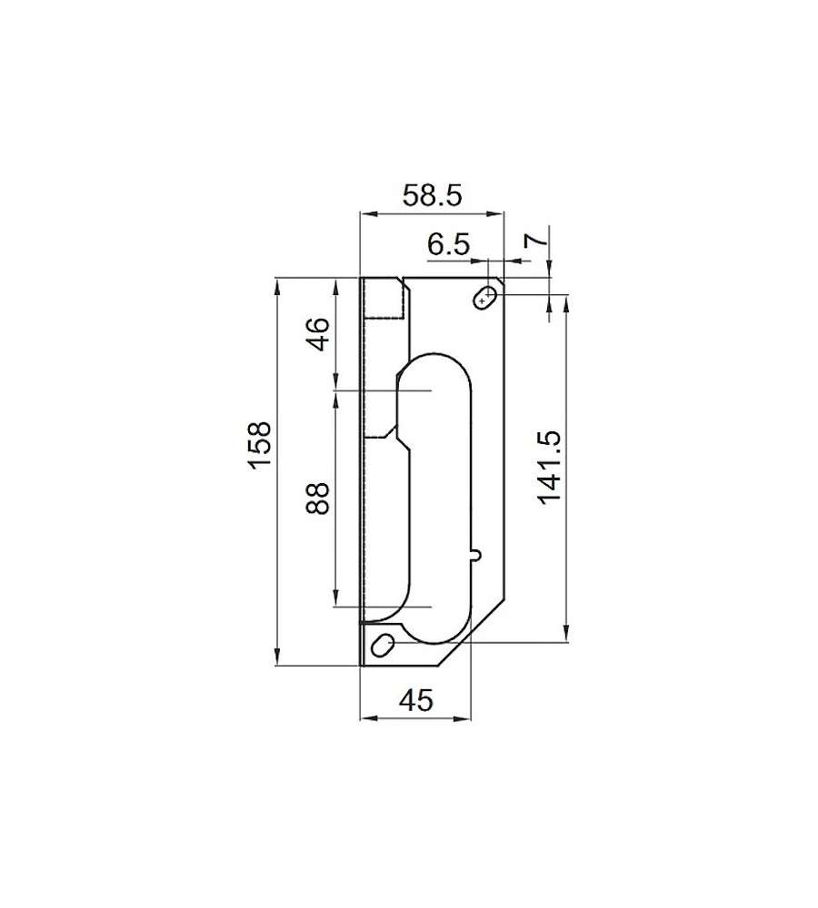 Acciaio zincato, protezione interna per serrature basculanti, schermatura leva di blocco, adatto a serrature cilindro Yale e tondo. Dimensioni: 58,5x158 mm.