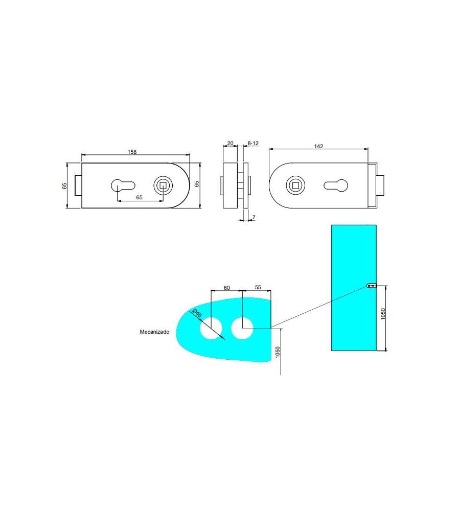 Progettato per l'installazione su porte in vetro di spessore compreso tra 8 e 10 mm. Sia il riscontro che la serratura includono viti speciali per porte in vetro di spessore 12 mm.Altro 1: