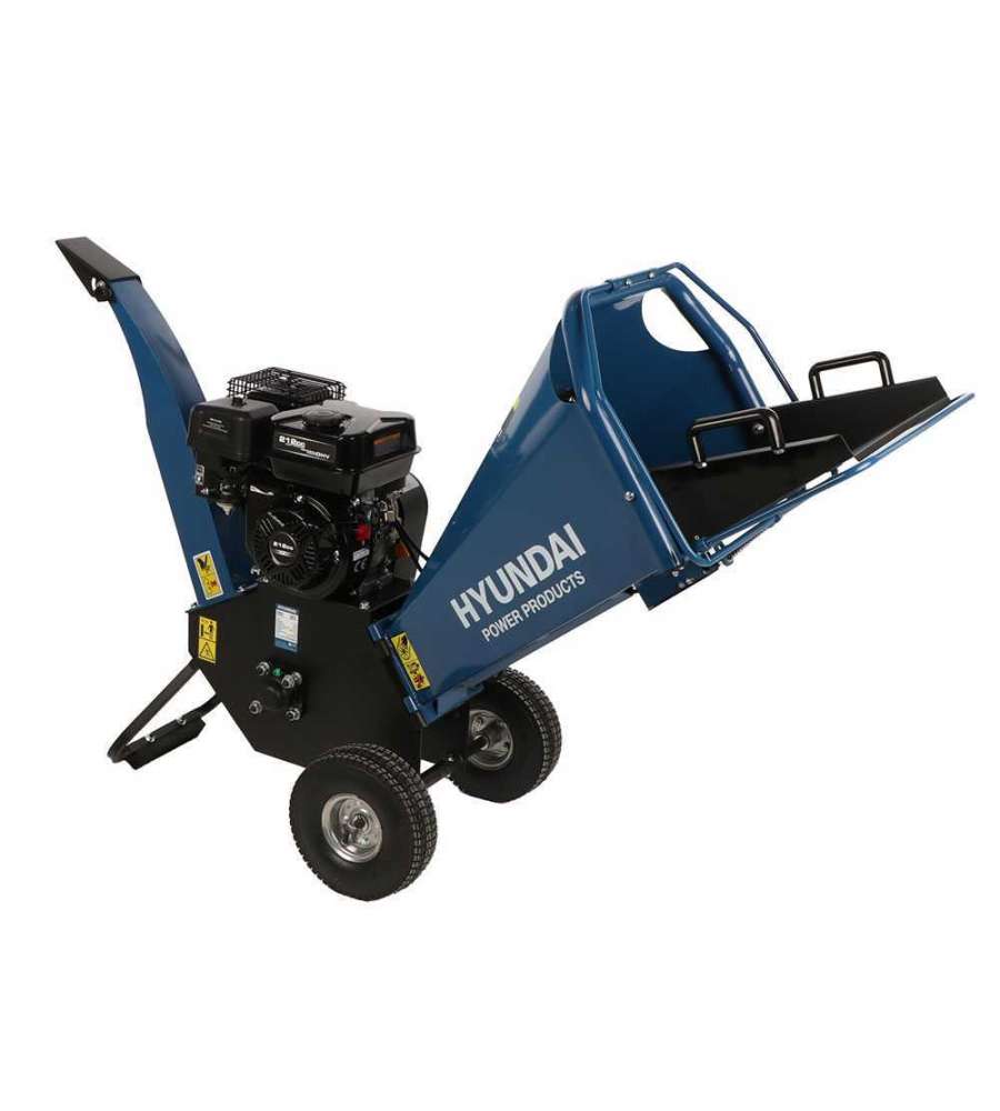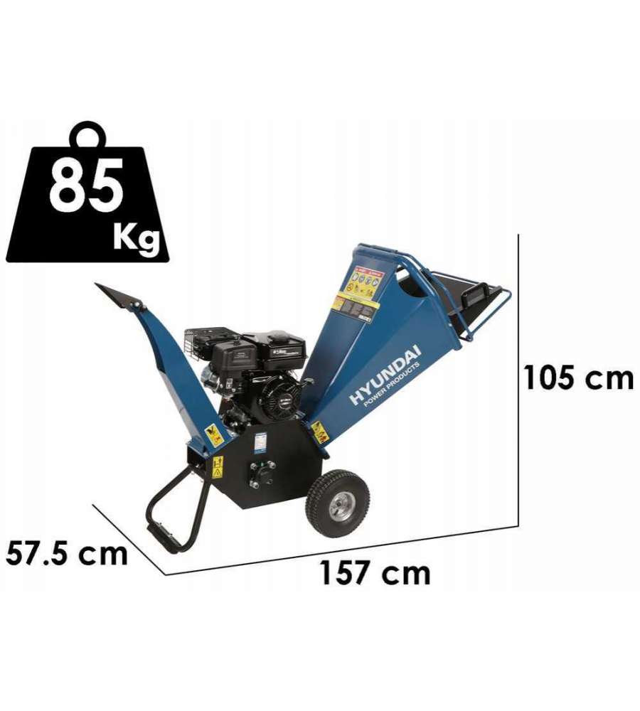 Biotrituratore a benzina Hyundai 6,5 Hp: motore EURO 5 da 212 cc, avviamento a strappo, scocca in acciaio smaltato, trasmissione a cinghia, capacità di triturazione 3-5 m³/h, lame reversibili 150 mm, diametro lavoro max 100 mm.Altro 1: