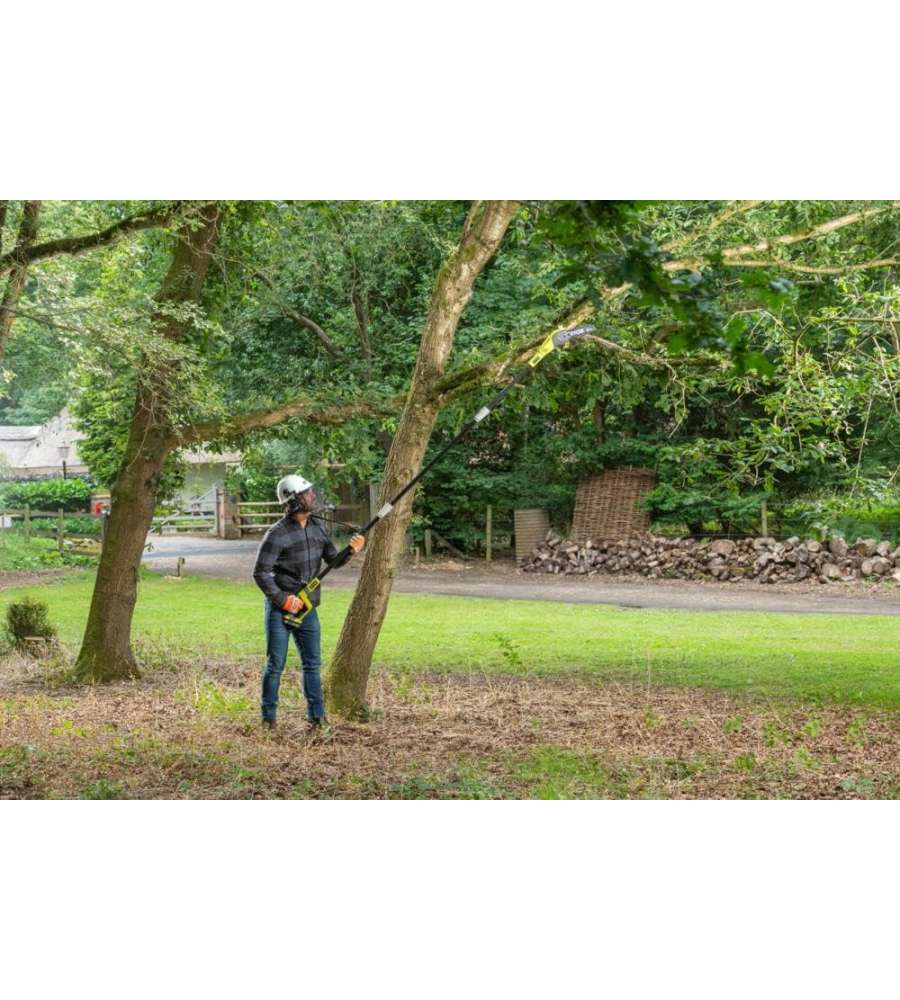 Potatore estensibile con asta telescopica fino a 2,9 m, lama da 20 cm e lubrificazione automatica. Ergonomico e sicuro, ideale per potature in altezza. Include batteria 18V ONE+ e accessori per un uso pratico e confortevole.Volt: