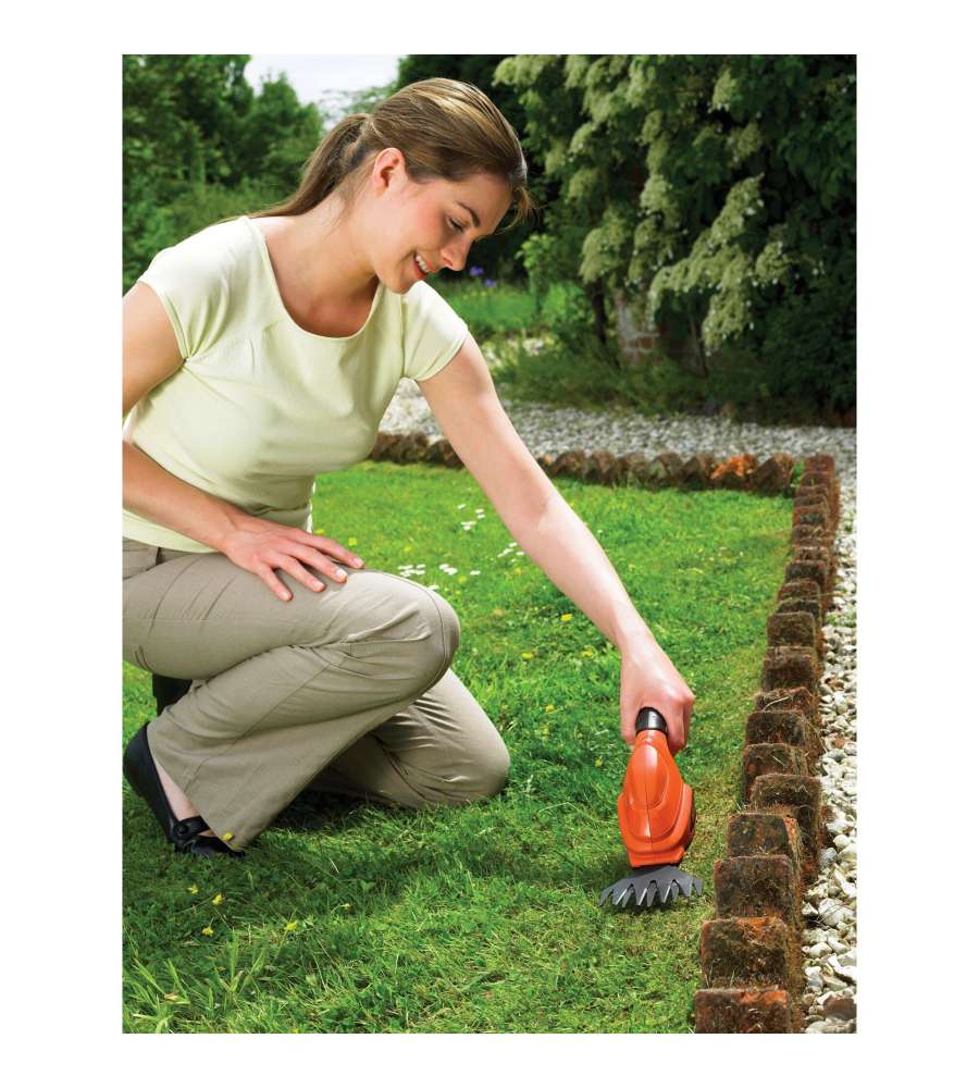 Cesoia a batteria 3,6 V con batteria litio integrata, larghezza lama di 10 cm e passo lama di 23 mm. Design leggero ed ergonomico, dotata di base di ricarica e indicatore LED. Ideale per bordature e manutenzione aiuole. Peso 1,47 kg.Volt: