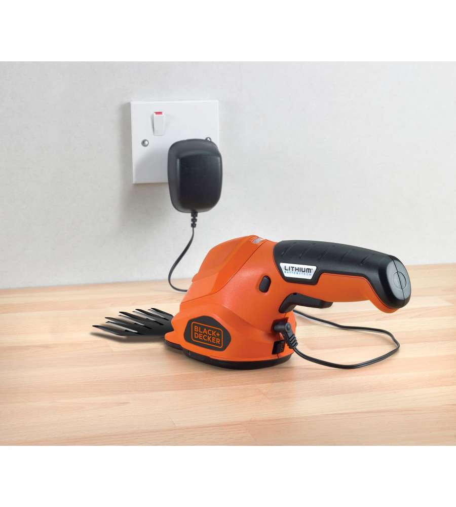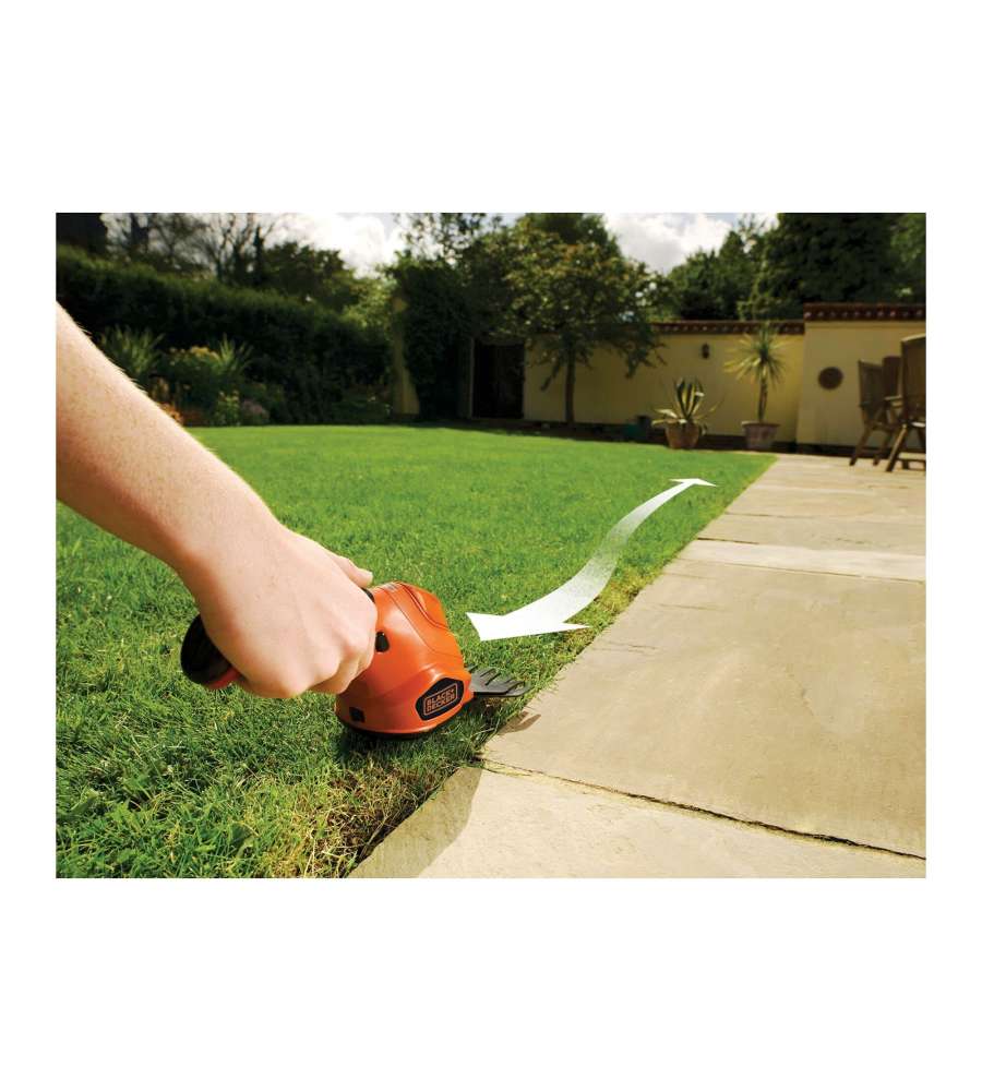 Descrizione: Cesoia a batteria Black+Decker 3,6 V, leggera e maneggevole. Larghezza taglio 10 cm e batteria al litio ricaricabile. Ideale per bordature e manutenzione giardini. Design ergonomico e pratico LED indicatore.