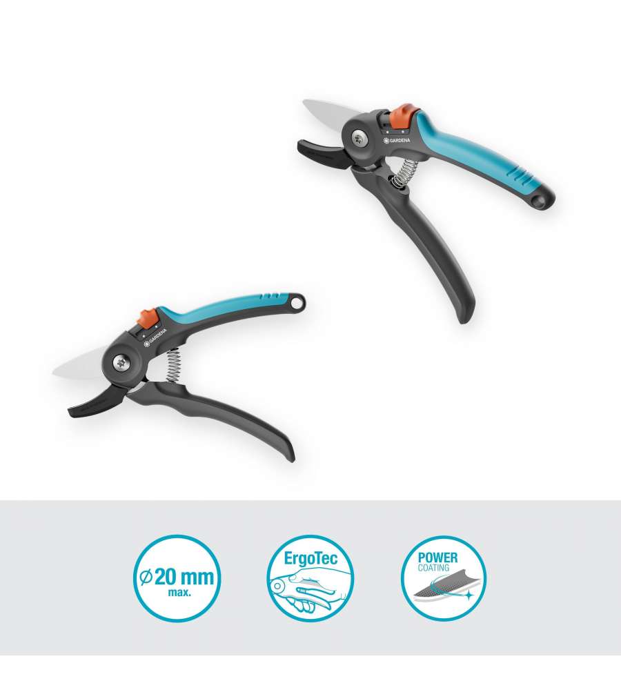 Forbice da giardino a incudine per legno secco con diametro di taglio di 20 mm. Impugnatura ergonomica SoftGrip per un comfort ottimale. Lame in lega di acciaio con rivestimento protettivo per prestazioni durature. Design leggero e maneggevole.Manico:
