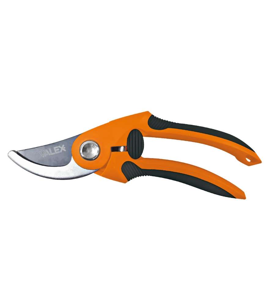 Descrizione: Forbici da potatura Valex da 200 mm, con lame in acciaio temprato rivestite in teflon per un taglio preciso. Impugnatura ergonomica antiscivolo e sistema di sicurezza. Ideali per giardinaggio e potature.