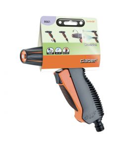 Descrizione: Scopri la Claber Pistola Precision 9561, lancia per irrigazione con impugnatura ergonomica e rivestimento gommato per una presa sicura. Meccanismo a pulsante per un flusso d'acqua controllato e getto regolabile da concentrato a ventaglio. Cappuccio antiurto in gomma e manopola per regolare la portata d'acqua, compatibile con raccordi standard.