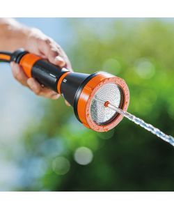 Lancia multifunzione ad elevato passaggio d'acqua. Piastra forata in acciaio inox. Ruotando la testa si ottengono 3 getti diversi: concentrato, doccia, nebulizzato. Per l’utilizzo con raccordi Max-Flow.Altro 1: