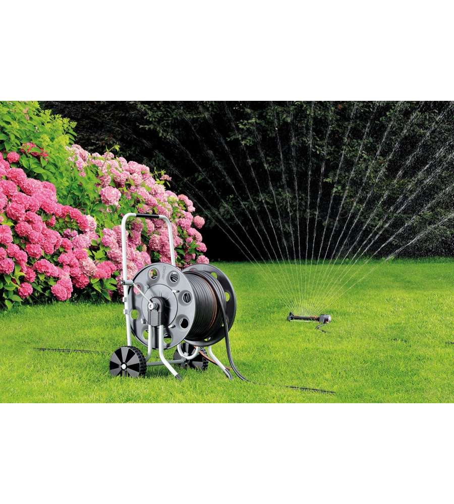 Descrizione: Carrello Metal Gemini Claber, robusto e durevole. Struttura in metallo con trattamento epossidico, facile montaggio. Ruote grandi per movimenti agevoli. Include raccordi universali per ogni esigenza.