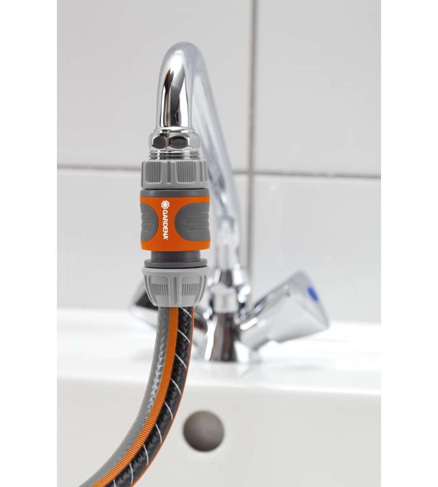 Adattatore filettato M 22 x 1 per collegare facilmente tubi da giardino a rubinetti con getto di perle. Resistente e a prova di gocciolamento, compatibile con il sistema Gardena. Materiale metallico, dimensioni compatte e design curvato.Capienza:
